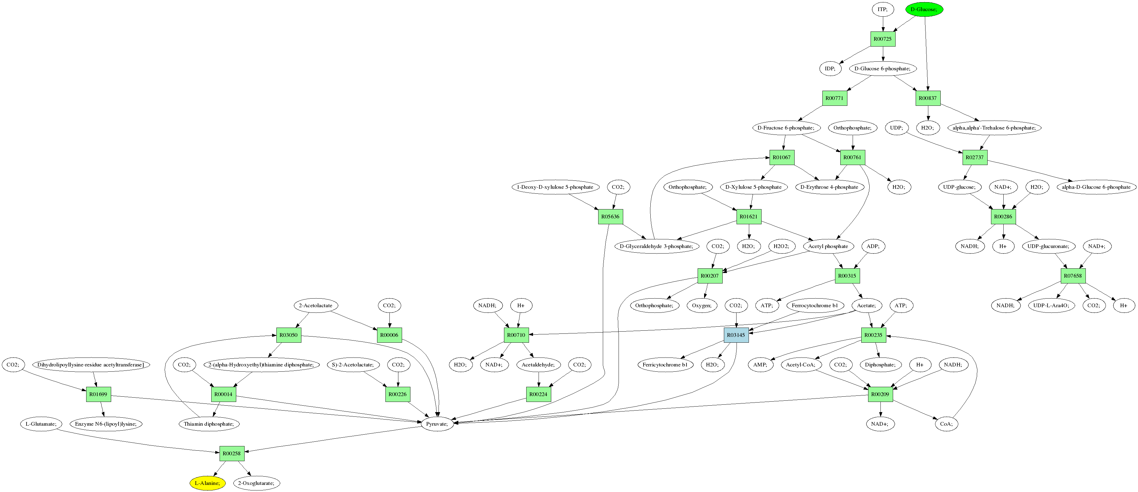 | RP02797 | R03145 | 0 | Ferricytochrome b1 + H2O; + Pyruvate; <=> CO2; + Ferrocytochrome b1 + Acetate; | ||||