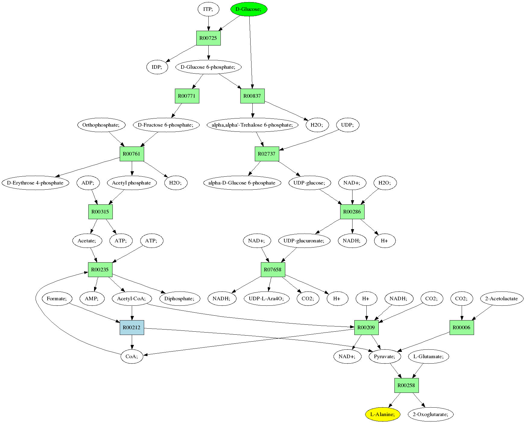 | RP00021 | R00258 | 477 | TRIRE0109187 | P52893|ALAM_YEAST | e-134 | 2.6.1.2 | L-Alanine; + 2-Oxoglutarate; <=> L-Glutamate; + Pyruvate; |