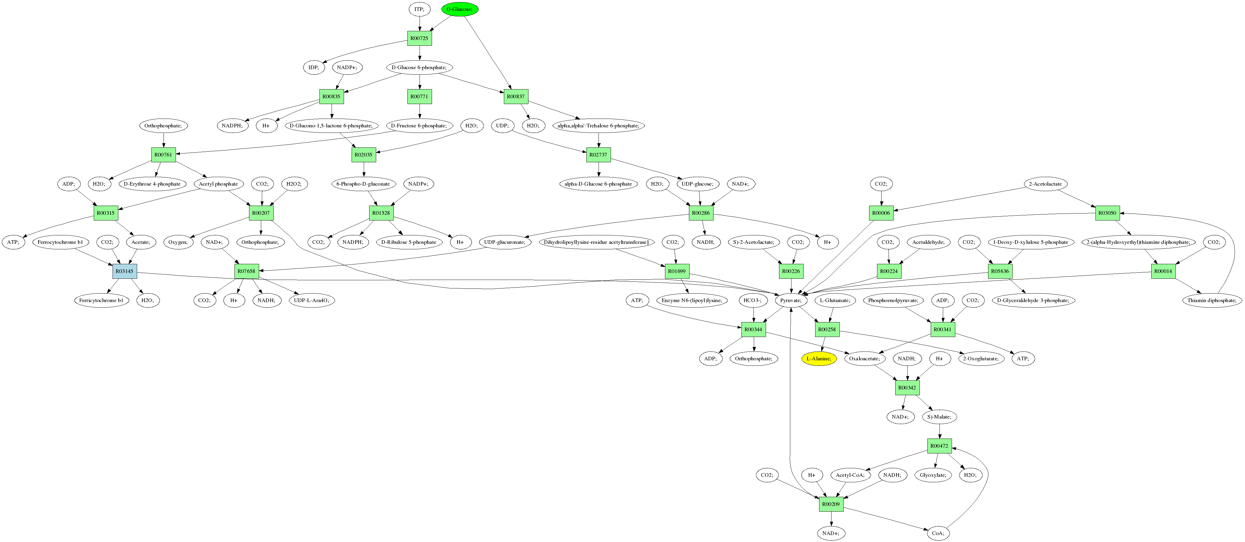 | RP00021 | R00258 | 477 | TRIRE0109187 | P52893|ALAM_YEAST | e-134 | 2.6.1.2 | L-Alanine; + 2-Oxoglutarate; <=> L-Glutamate; + Pyruvate; |