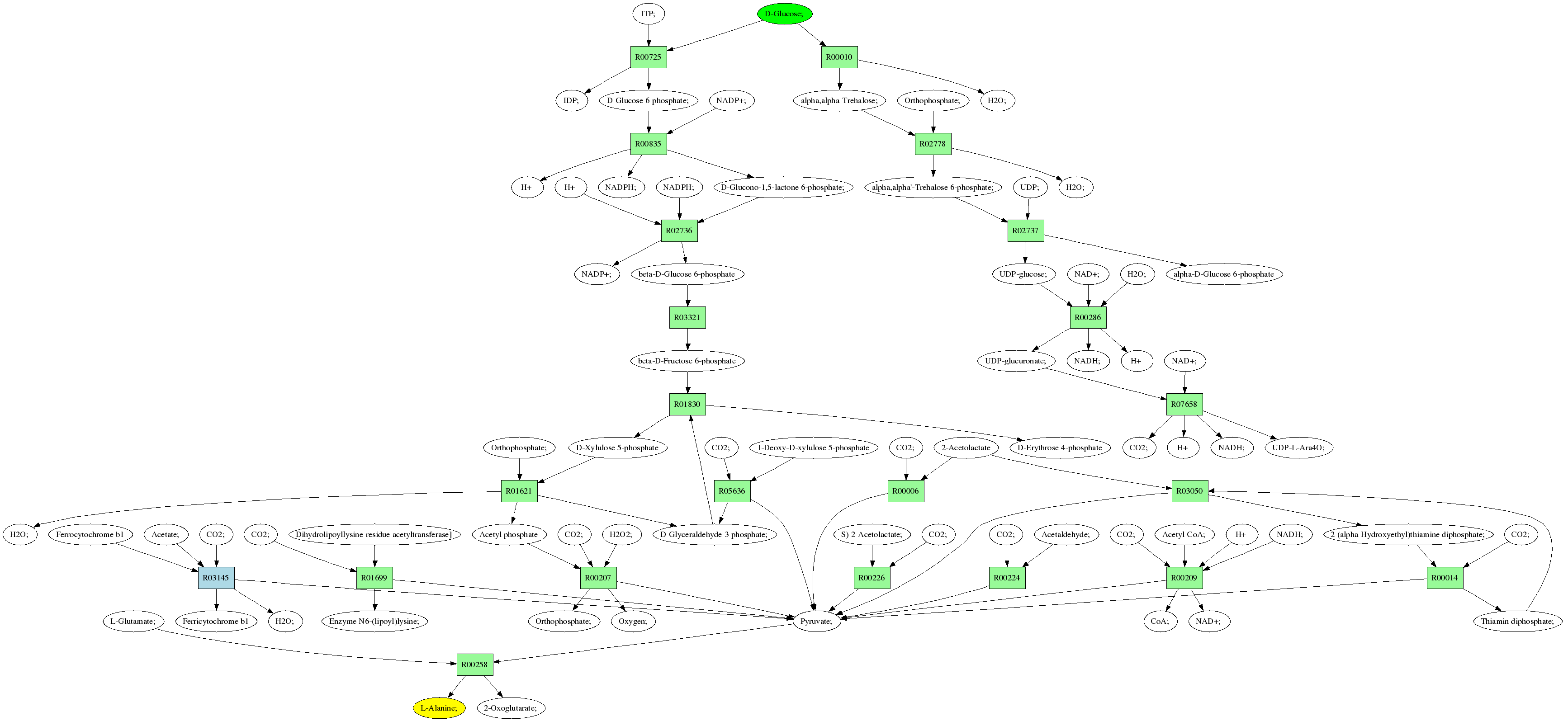 | RP00021 | R00258 | 477 | TRIRE0109187 | P52893|ALAM_YEAST | e-134 | 2.6.1.2 | L-Alanine; + 2-Oxoglutarate; <=> L-Glutamate; + Pyruvate; |
