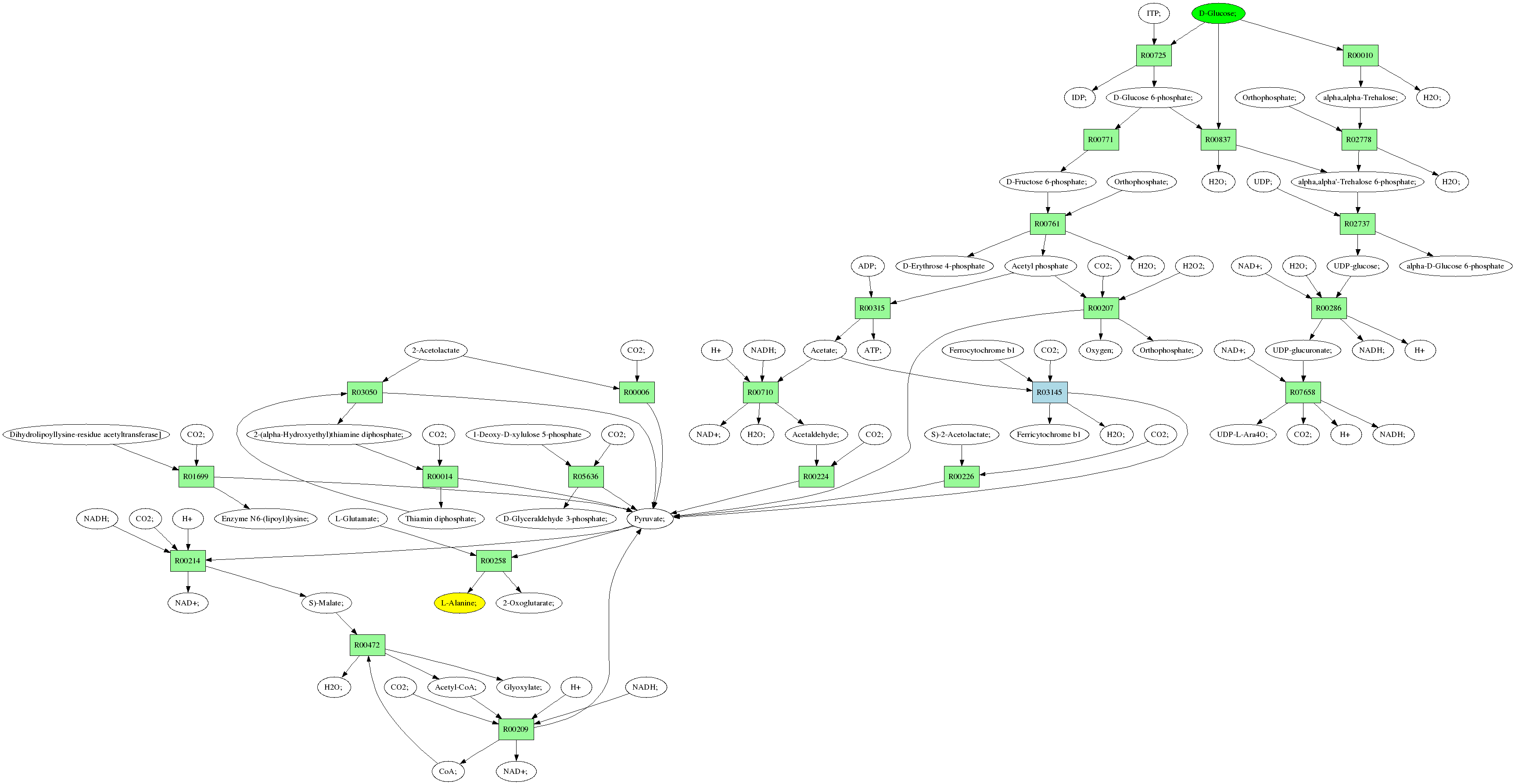 | RP00021 | R00258 | 477 | TRIRE0109187 | P52893|ALAM_YEAST | e-134 | 2.6.1.2 | L-Alanine; + 2-Oxoglutarate; <=> L-Glutamate; + Pyruvate; |