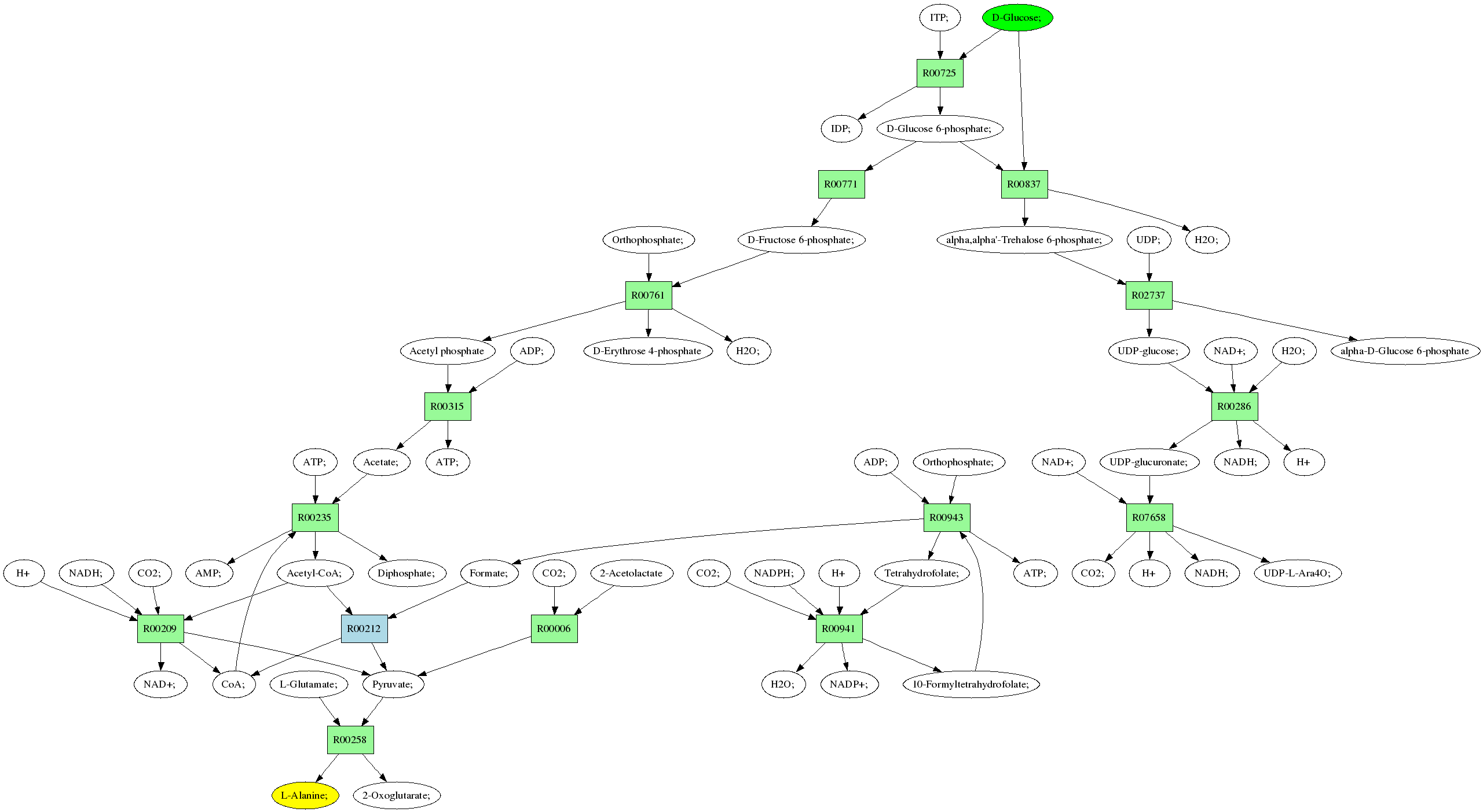 | RP00021 | R00258 | 477 | TRIRE0109187 | P52893|ALAM_YEAST | e-134 | 2.6.1.2 | L-Alanine; + 2-Oxoglutarate; <=> L-Glutamate; + Pyruvate; |