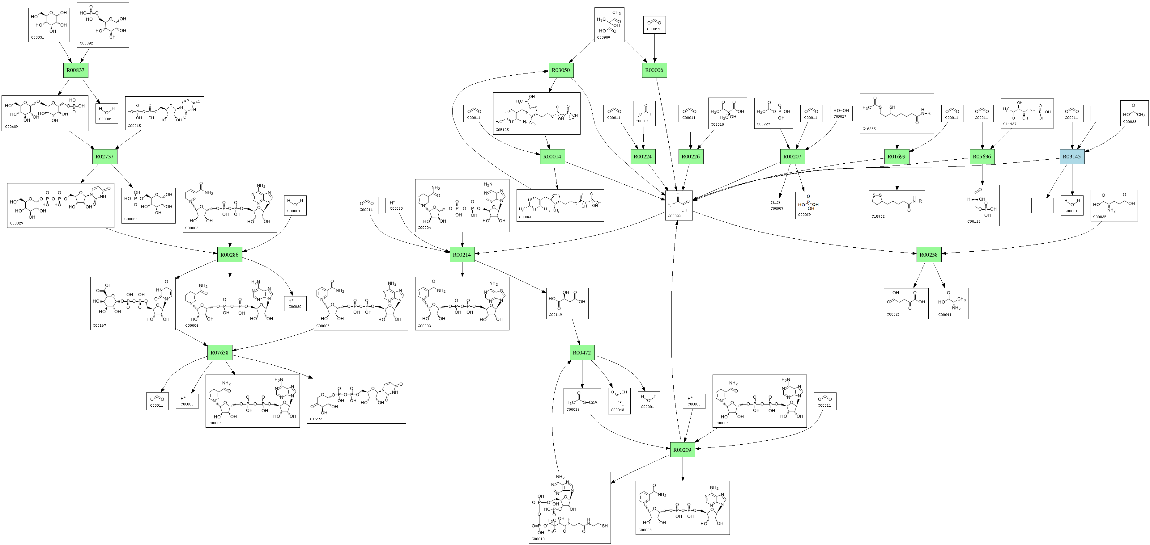| RP00285 | R00209 | 576 | TRIRE0077373 | O00087|DLDH_SCHPO | e-164 | 1.8.1.4 | CoA; + NAD+; + Pyruvate; <=> Acetyl-CoA; + H+ + NADH; + CO2; |