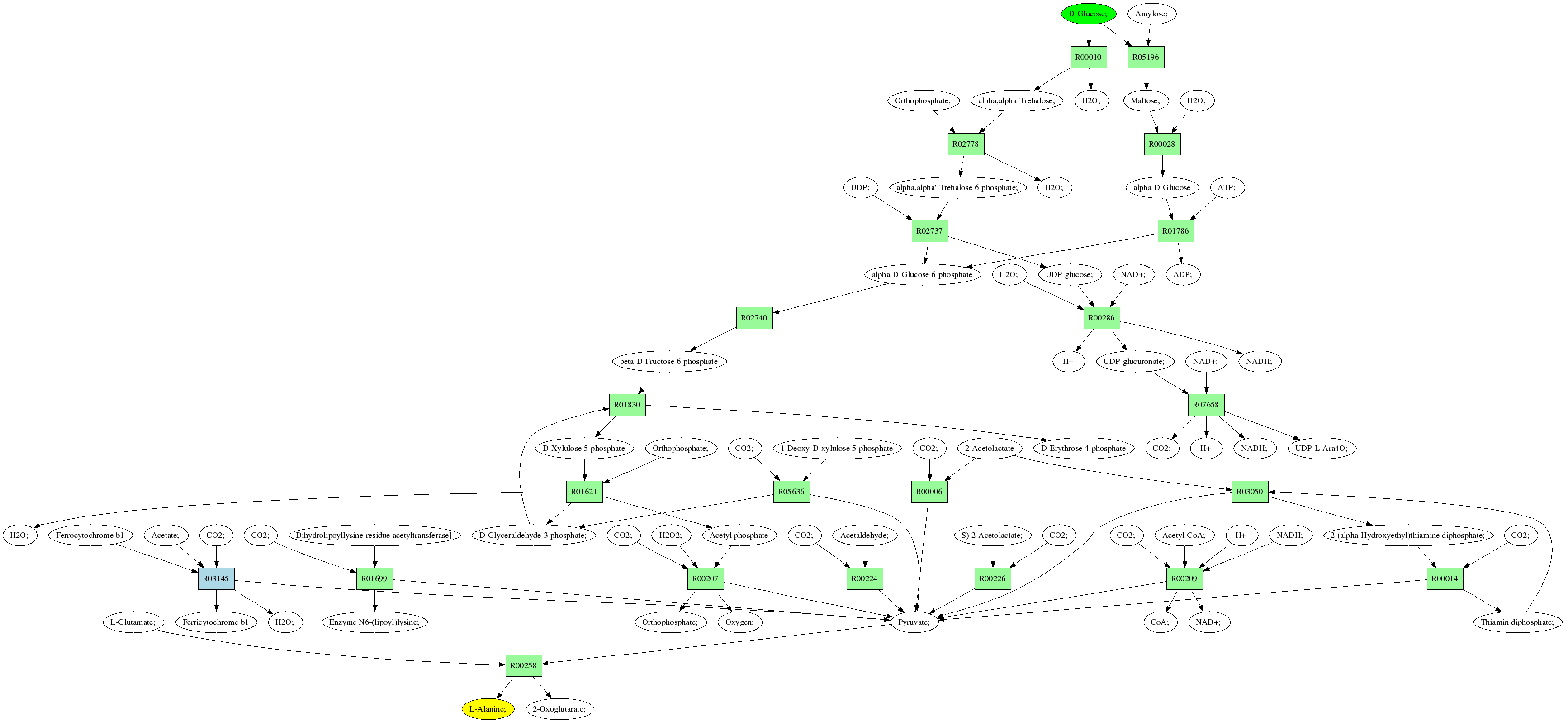 | RP00021 | R00258 | 477 | TRIRE0109187 | P52893|ALAM_YEAST | e-134 | 2.6.1.2 | L-Alanine; + 2-Oxoglutarate; <=> L-Glutamate; + Pyruvate; |