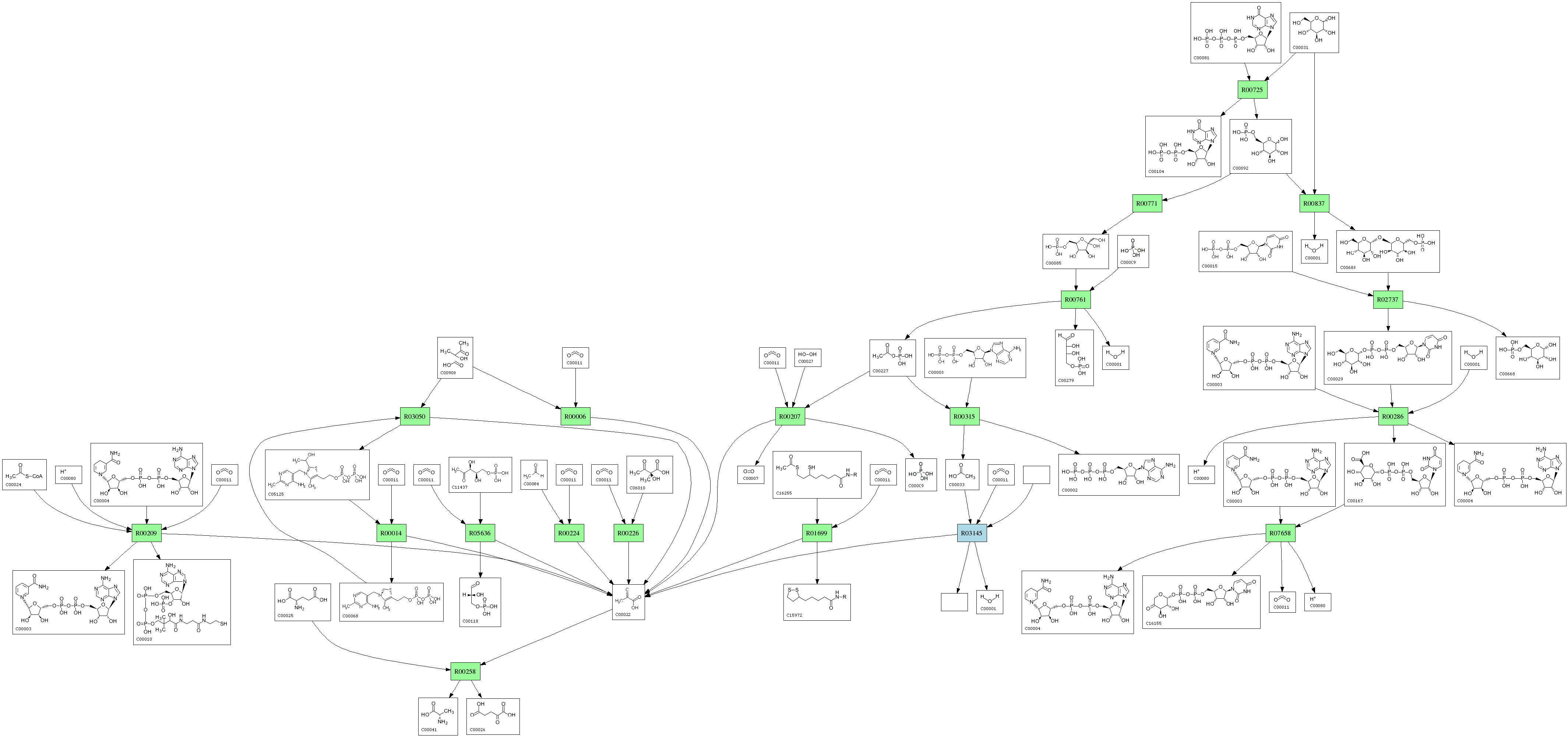 | RP00285 | R00209 | 576 | TRIRE0077373 | O00087|DLDH_SCHPO | e-164 | 1.8.1.4 | CoA; + NAD+; + Pyruvate; <=> Acetyl-CoA; + H+ + NADH; + CO2; |