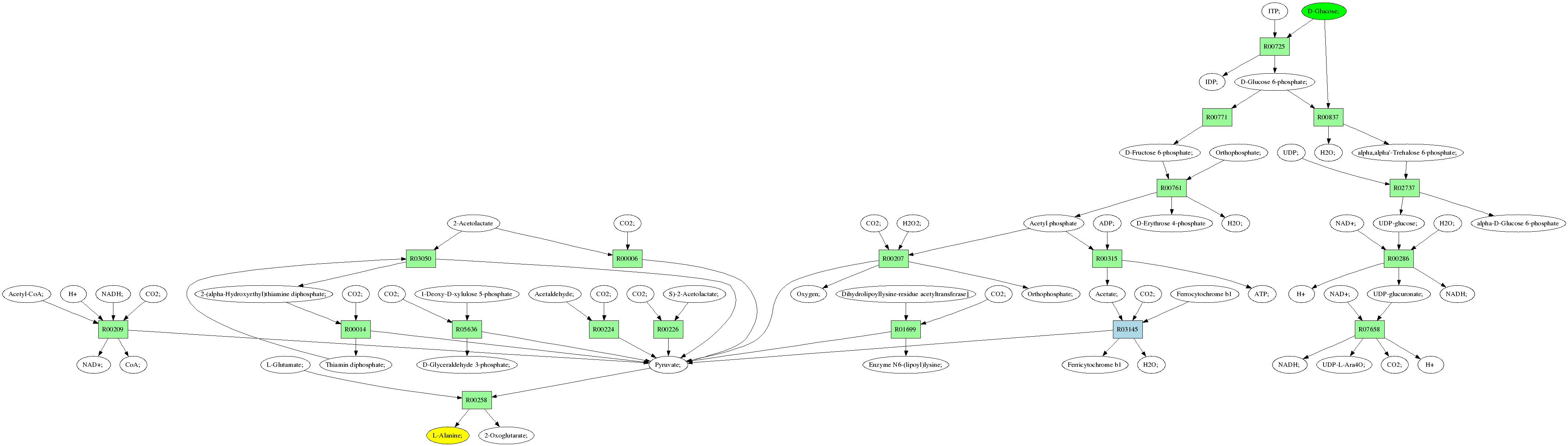 | RP00021 | R00258 | 477 | TRIRE0109187 | P52893|ALAM_YEAST | e-134 | 2.6.1.2 | L-Alanine; + 2-Oxoglutarate; <=> L-Glutamate; + Pyruvate; |