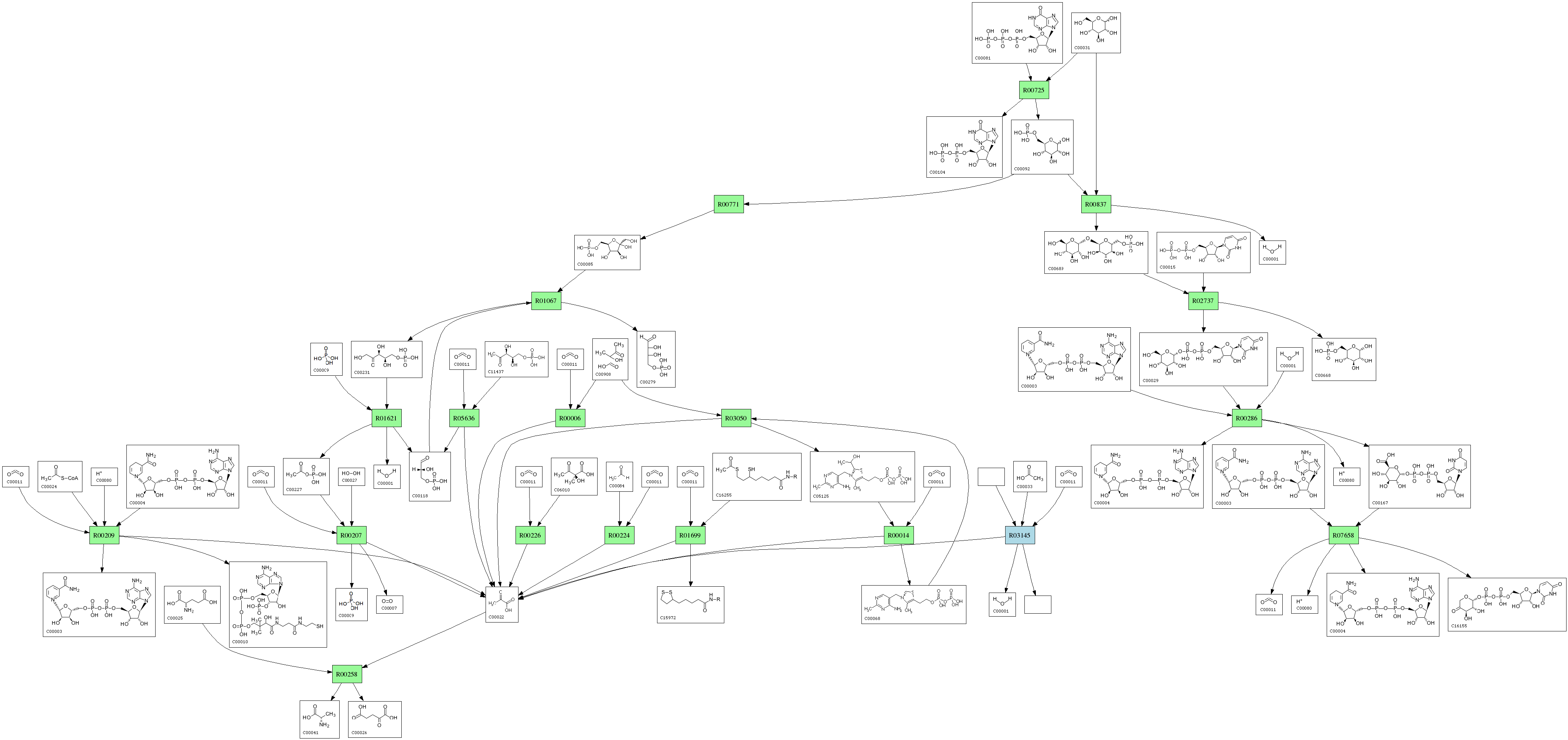 | RP00285 | R00209 | 576 | TRIRE0077373 | O00087|DLDH_SCHPO | e-164 | 1.8.1.4 | CoA; + NAD+; + Pyruvate; <=> Acetyl-CoA; + H+ + NADH; + CO2; |