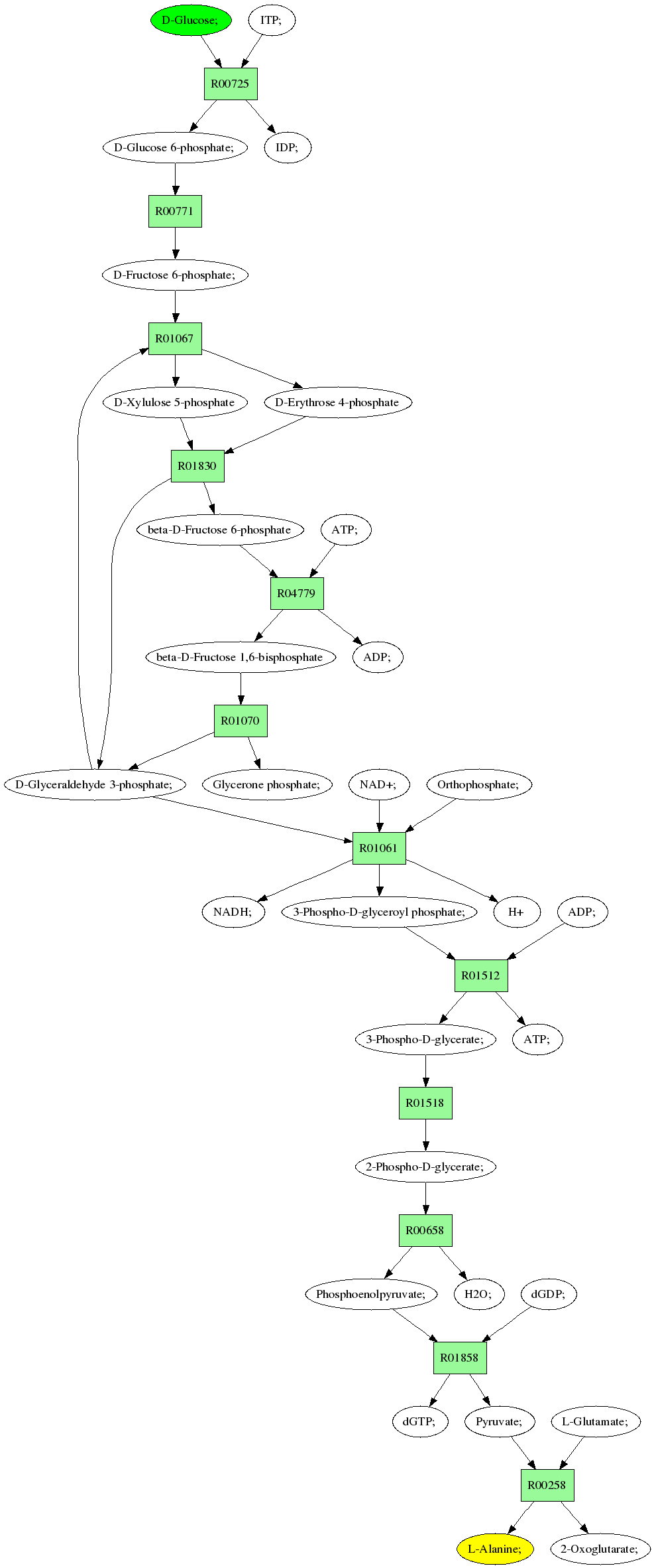 | RP00021 | R00258 | 477 | TRIRE0109187 | P52893|ALAM_YEAST | e-134 | 2.6.1.2 | L-Alanine; + 2-Oxoglutarate; <=> L-Glutamate; + Pyruvate; |