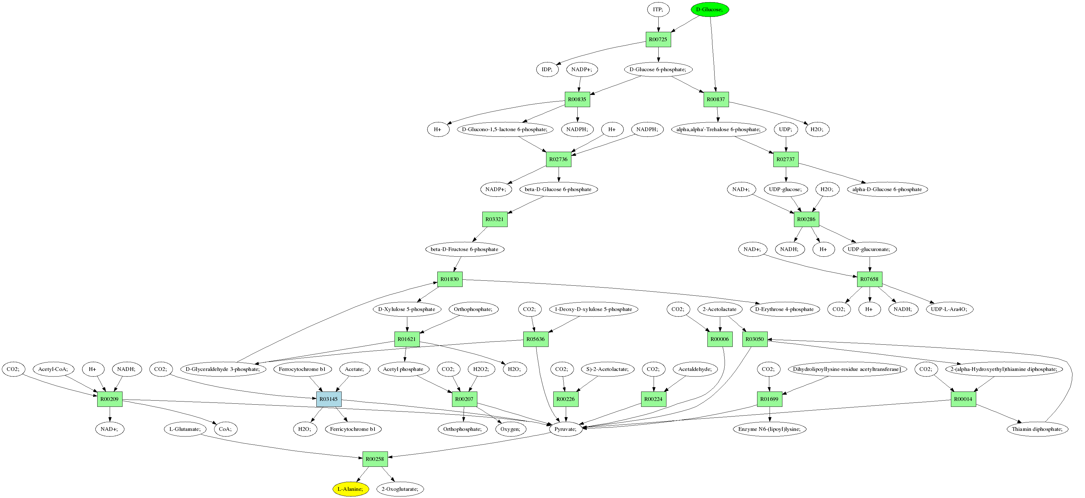 | RP00021 | R00258 | 477 | TRIRE0109187 | P52893|ALAM_YEAST | e-134 | 2.6.1.2 | L-Alanine; + 2-Oxoglutarate; <=> L-Glutamate; + Pyruvate; |