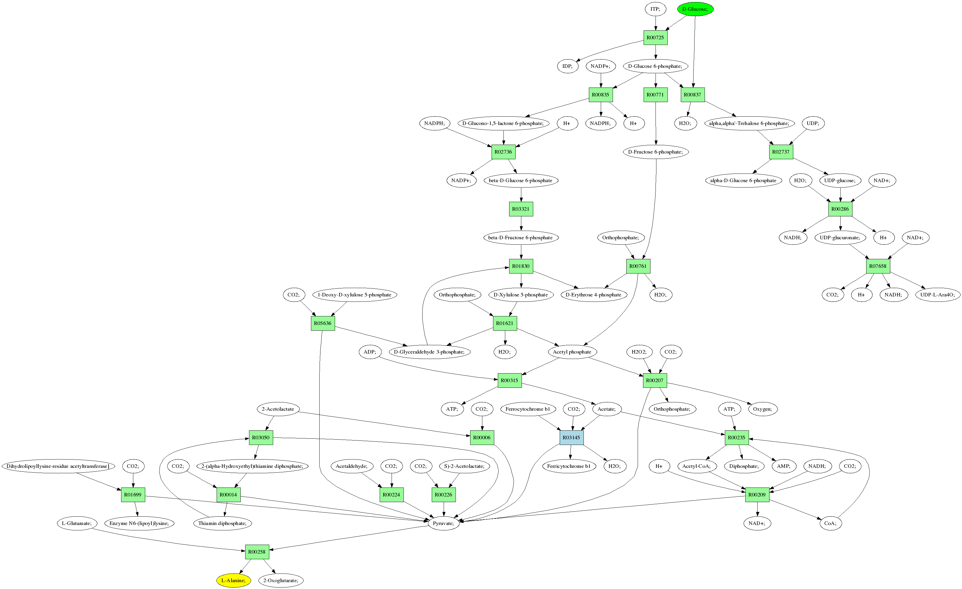 | RP00021 | R00258 | 477 | TRIRE0109187 | P52893|ALAM_YEAST | e-134 | 2.6.1.2 | L-Alanine; + 2-Oxoglutarate; <=> L-Glutamate; + Pyruvate; |