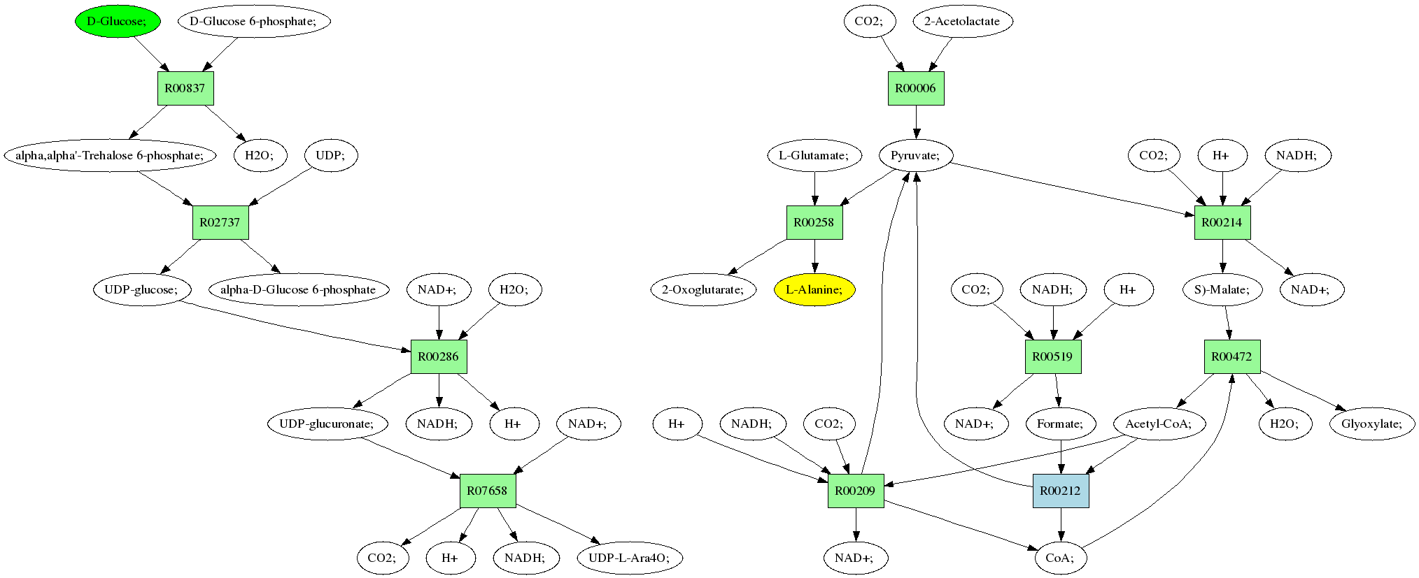 | RP00021 | R00258 | 477 | TRIRE0109187 | P52893|ALAM_YEAST | e-134 | 2.6.1.2 | L-Alanine; + 2-Oxoglutarate; <=> L-Glutamate; + Pyruvate; |