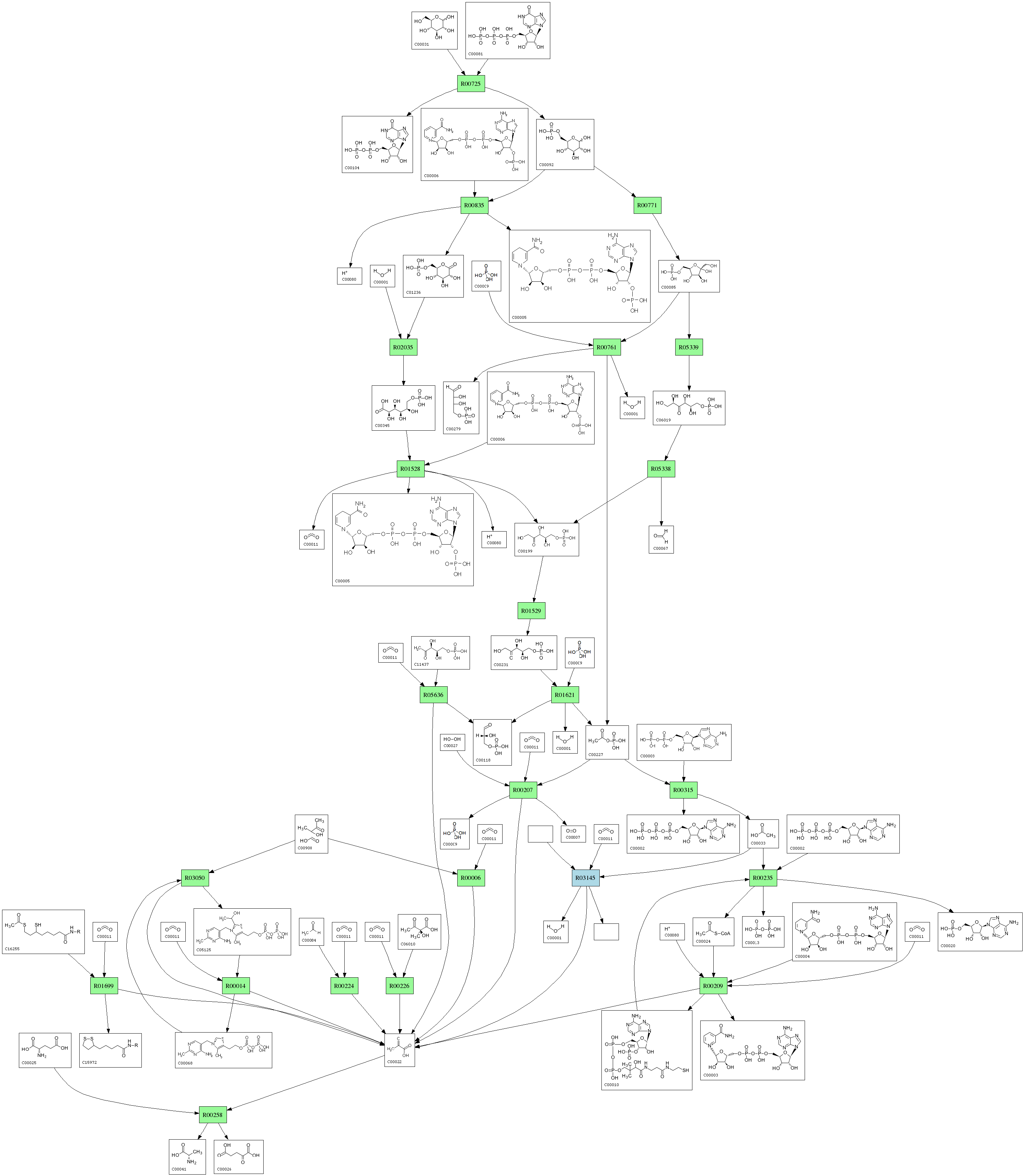 | RP00285 | R00209 | 576 | TRIRE0077373 | O00087|DLDH_SCHPO | e-164 | 1.8.1.4 | CoA; + NAD+; + Pyruvate; <=> Acetyl-CoA; + H+ + NADH; + CO2; |