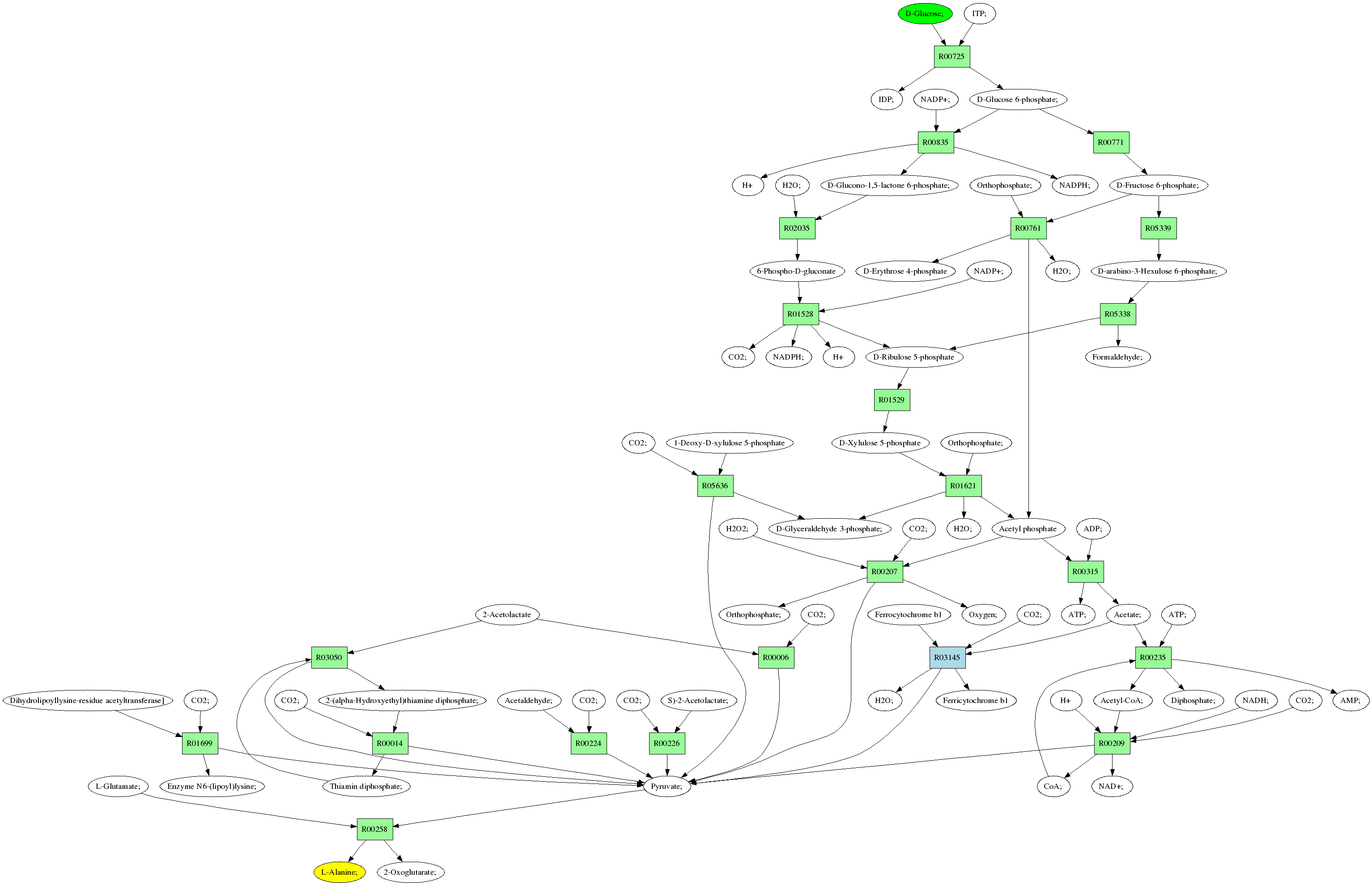 | RP02797 | R03145 | 0 | Ferricytochrome b1 + H2O; + Pyruvate; <=> CO2; + Ferrocytochrome b1 + Acetate; | ||||