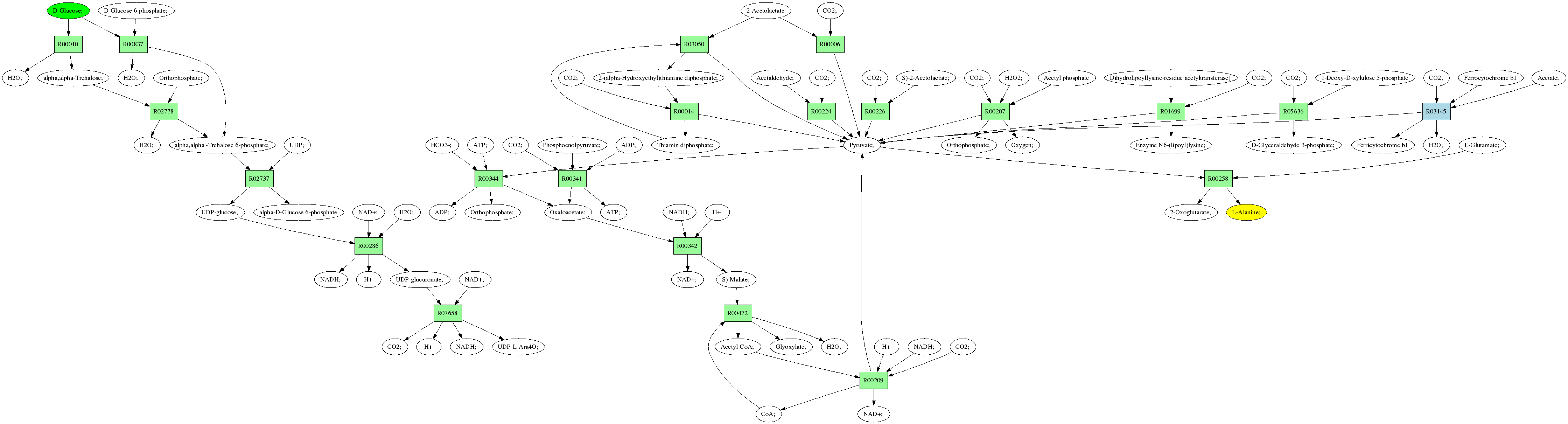 | RP00021 | R00258 | 477 | TRIRE0109187 | P52893|ALAM_YEAST | e-134 | 2.6.1.2 | L-Alanine; + 2-Oxoglutarate; <=> L-Glutamate; + Pyruvate; |