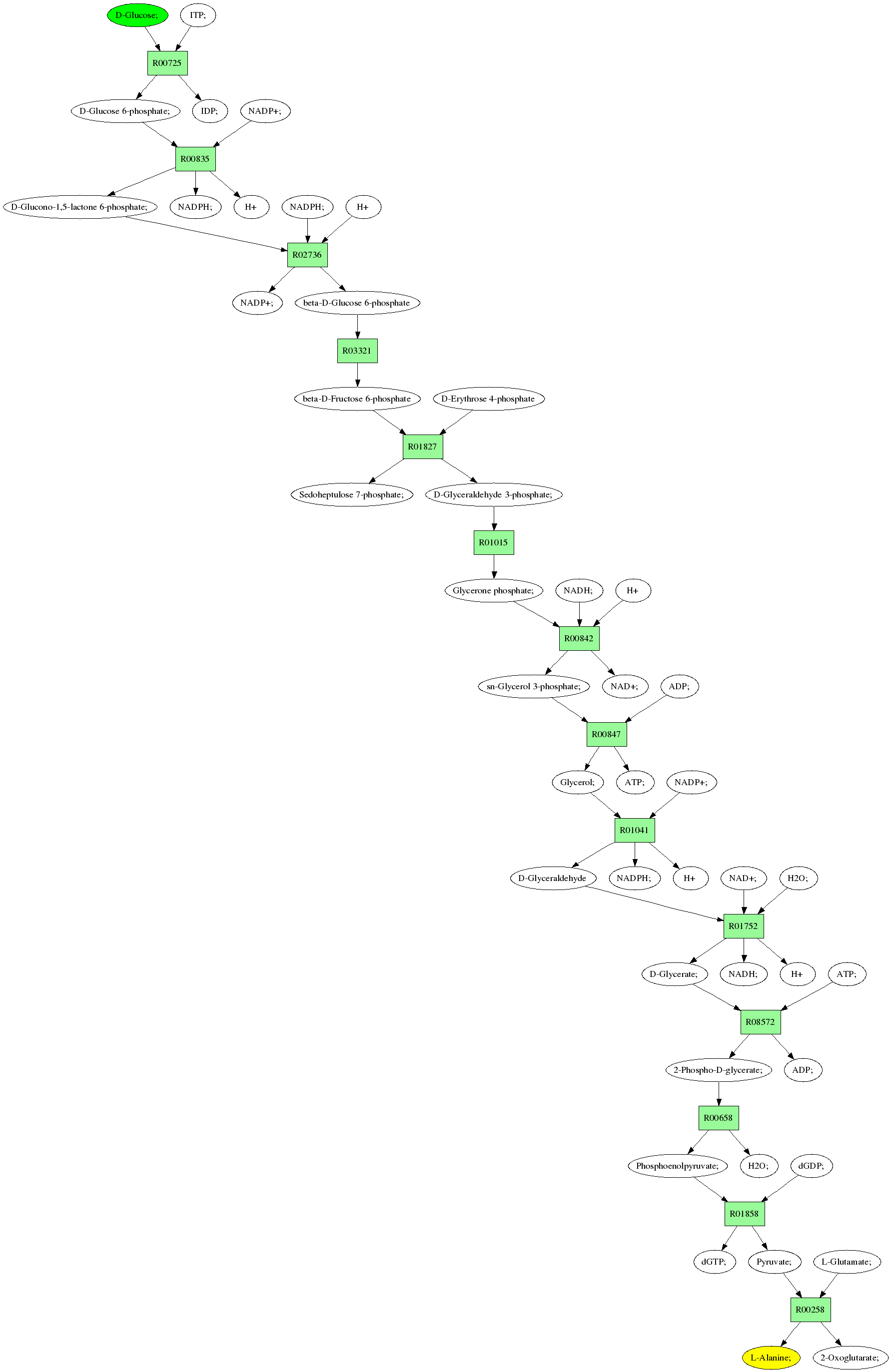 | RP00021 | R00258 | 477 | TRIRE0109187 | P52893|ALAM_YEAST | e-134 | 2.6.1.2 | L-Alanine; + 2-Oxoglutarate; <=> L-Glutamate; + Pyruvate; |