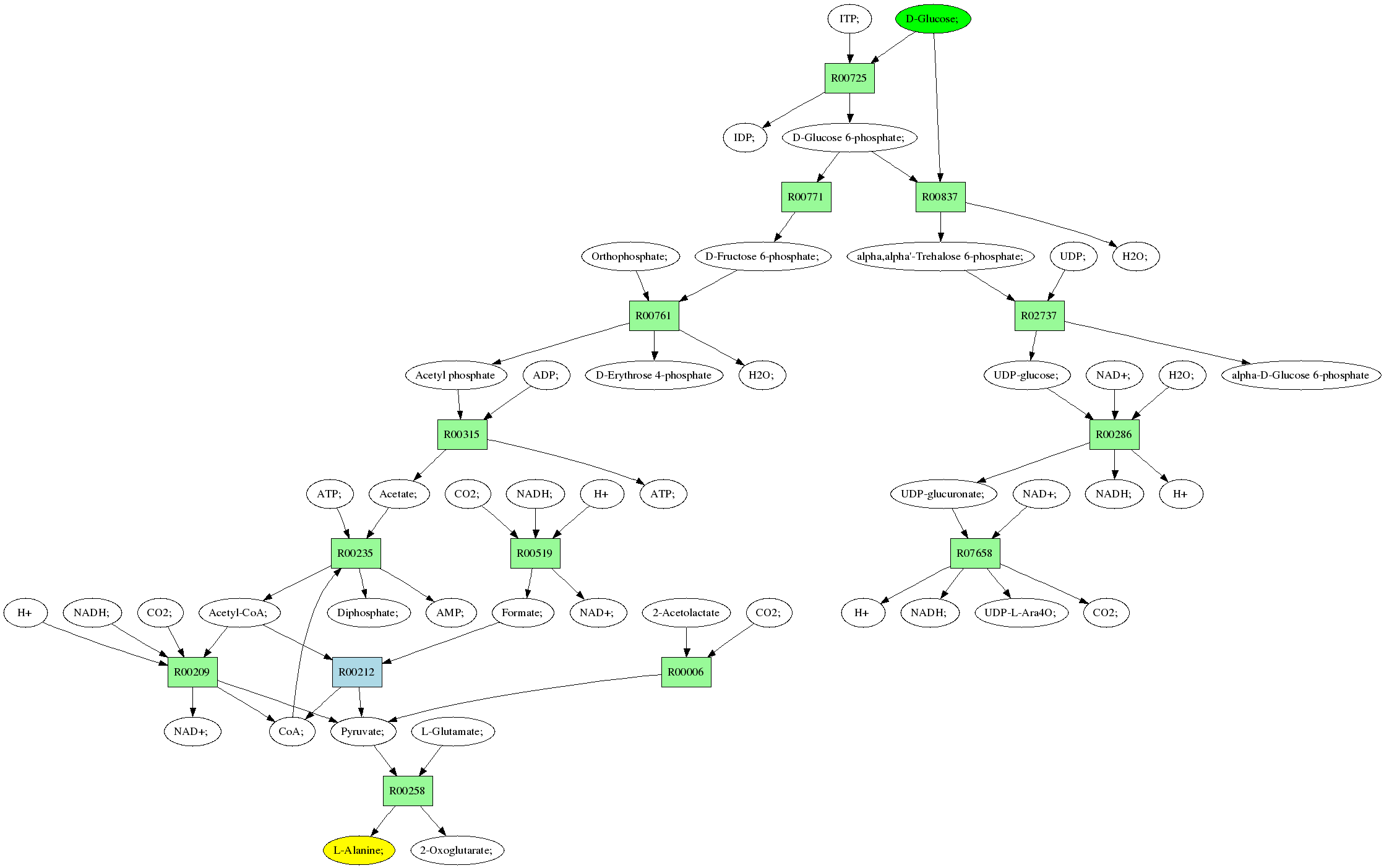 | RP00021 | R00258 | 477 | TRIRE0109187 | P52893|ALAM_YEAST | e-134 | 2.6.1.2 | L-Alanine; + 2-Oxoglutarate; <=> L-Glutamate; + Pyruvate; |