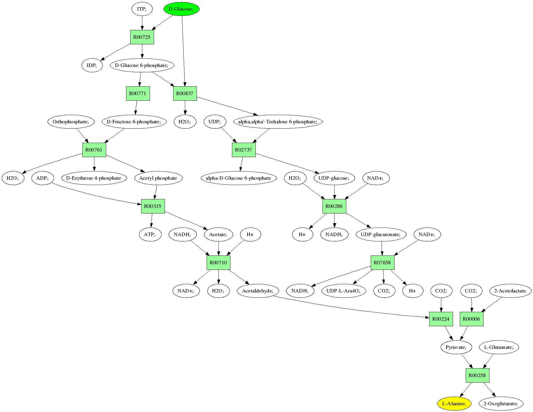| RP00021 | R00258 | 477 | TRIRE0109187 | P52893|ALAM_YEAST | e-134 | 2.6.1.2 | L-Alanine; + 2-Oxoglutarate; <=> L-Glutamate; + Pyruvate; |