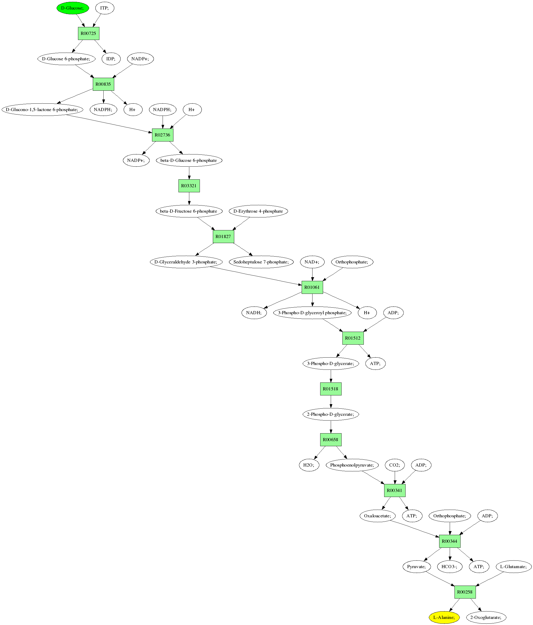 | RP00021 | R00258 | 477 | TRIRE0109187 | P52893|ALAM_YEAST | e-134 | 2.6.1.2 | L-Alanine; + 2-Oxoglutarate; <=> L-Glutamate; + Pyruvate; |
