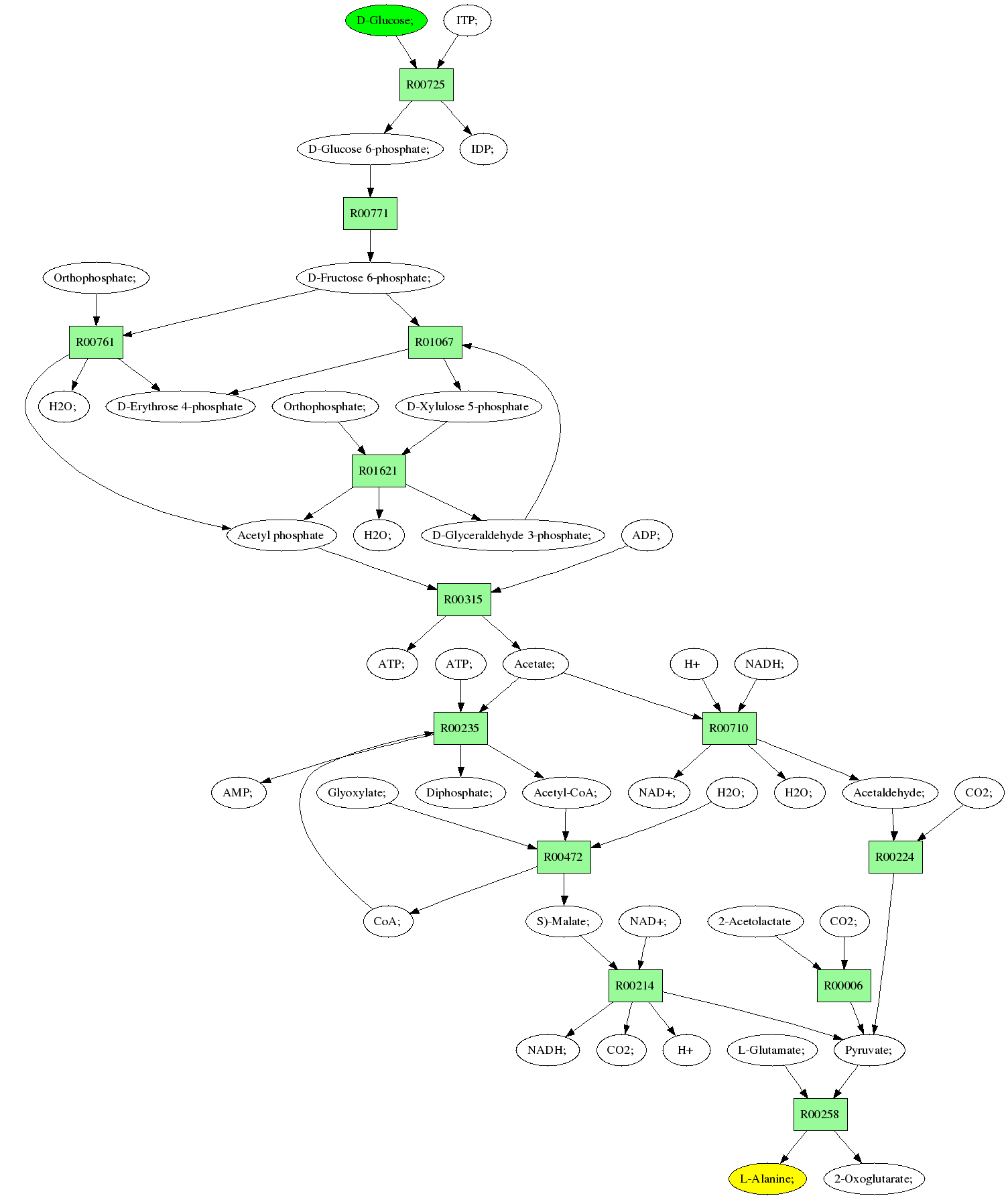 | RP00021 | R00258 | 477 | TRIRE0109187 | P52893|ALAM_YEAST | e-134 | 2.6.1.2 | L-Alanine; + 2-Oxoglutarate; <=> L-Glutamate; + Pyruvate; |