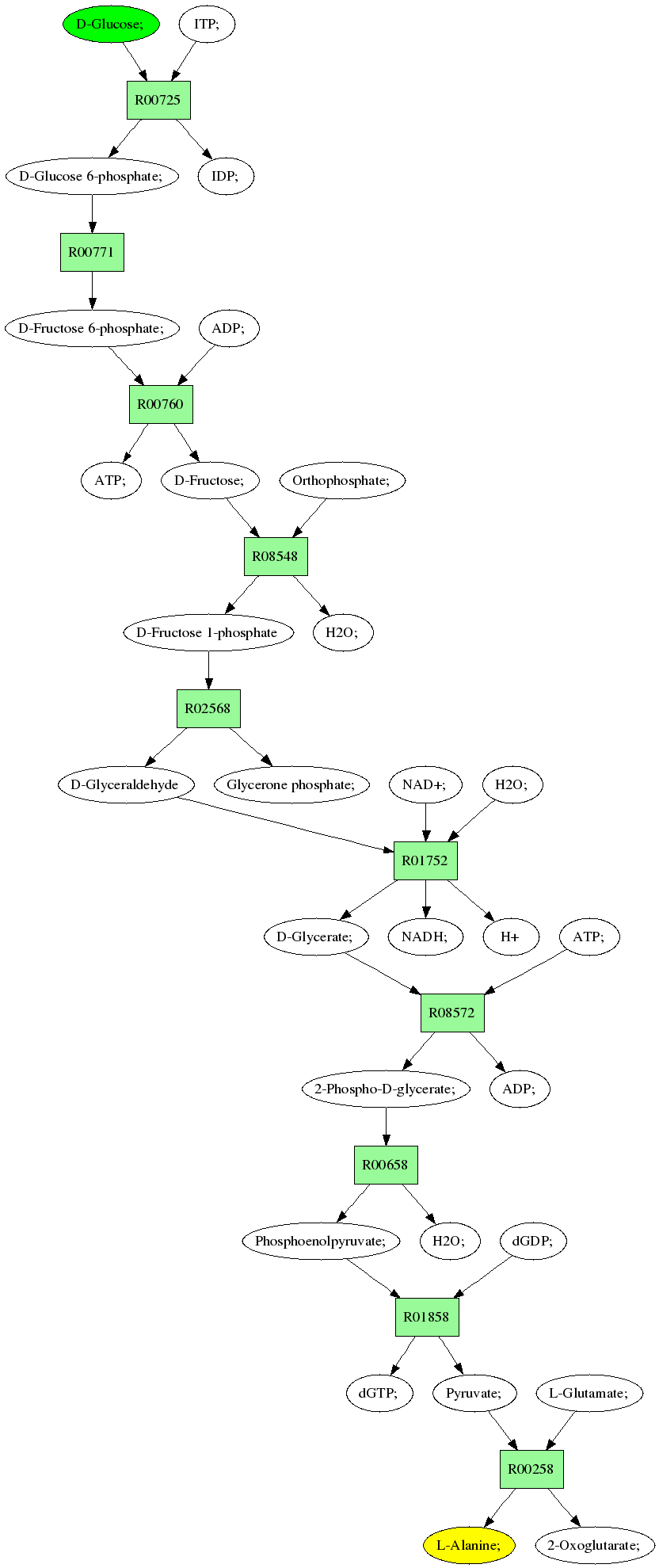 | RP00021 | R00258 | 477 | TRIRE0109187 | P52893|ALAM_YEAST | e-134 | 2.6.1.2 | L-Alanine; + 2-Oxoglutarate; <=> L-Glutamate; + Pyruvate; |