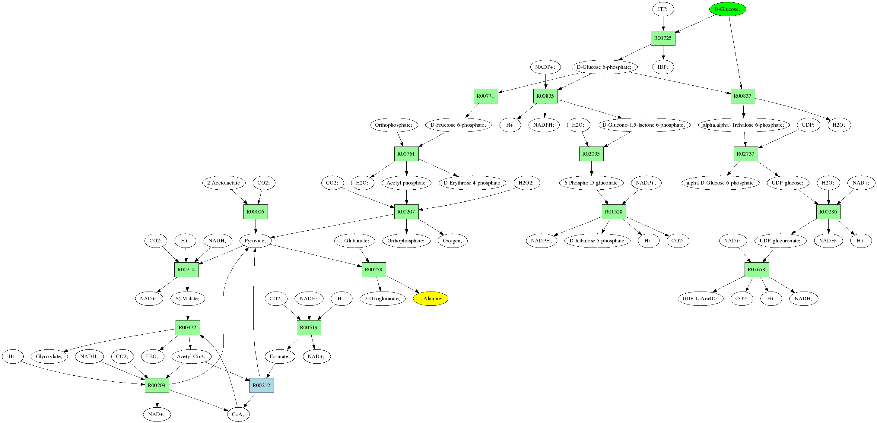 | RP00021 | R00258 | 477 | TRIRE0109187 | P52893|ALAM_YEAST | e-134 | 2.6.1.2 | L-Alanine; + 2-Oxoglutarate; <=> L-Glutamate; + Pyruvate; |