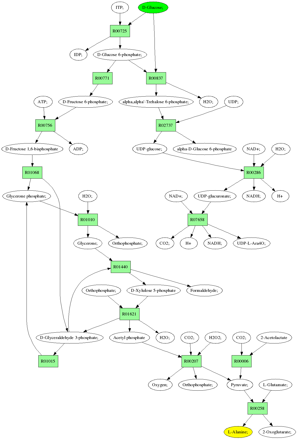 | RP00021 | R00258 | 477 | TRIRE0109187 | P52893|ALAM_YEAST | e-134 | 2.6.1.2 | L-Alanine; + 2-Oxoglutarate; <=> L-Glutamate; + Pyruvate; |