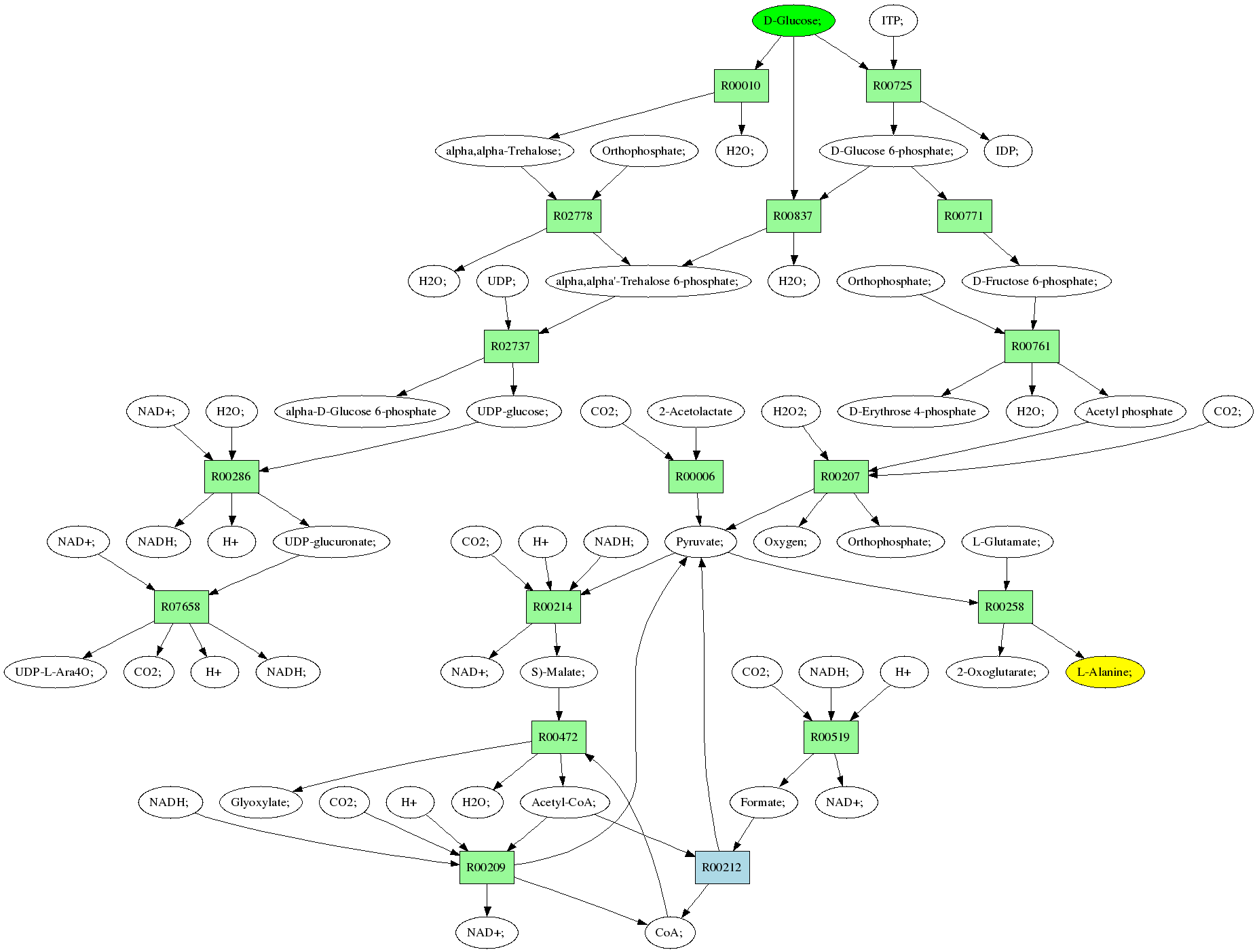 | RP00021 | R00258 | 477 | TRIRE0109187 | P52893|ALAM_YEAST | e-134 | 2.6.1.2 | L-Alanine; + 2-Oxoglutarate; <=> L-Glutamate; + Pyruvate; |