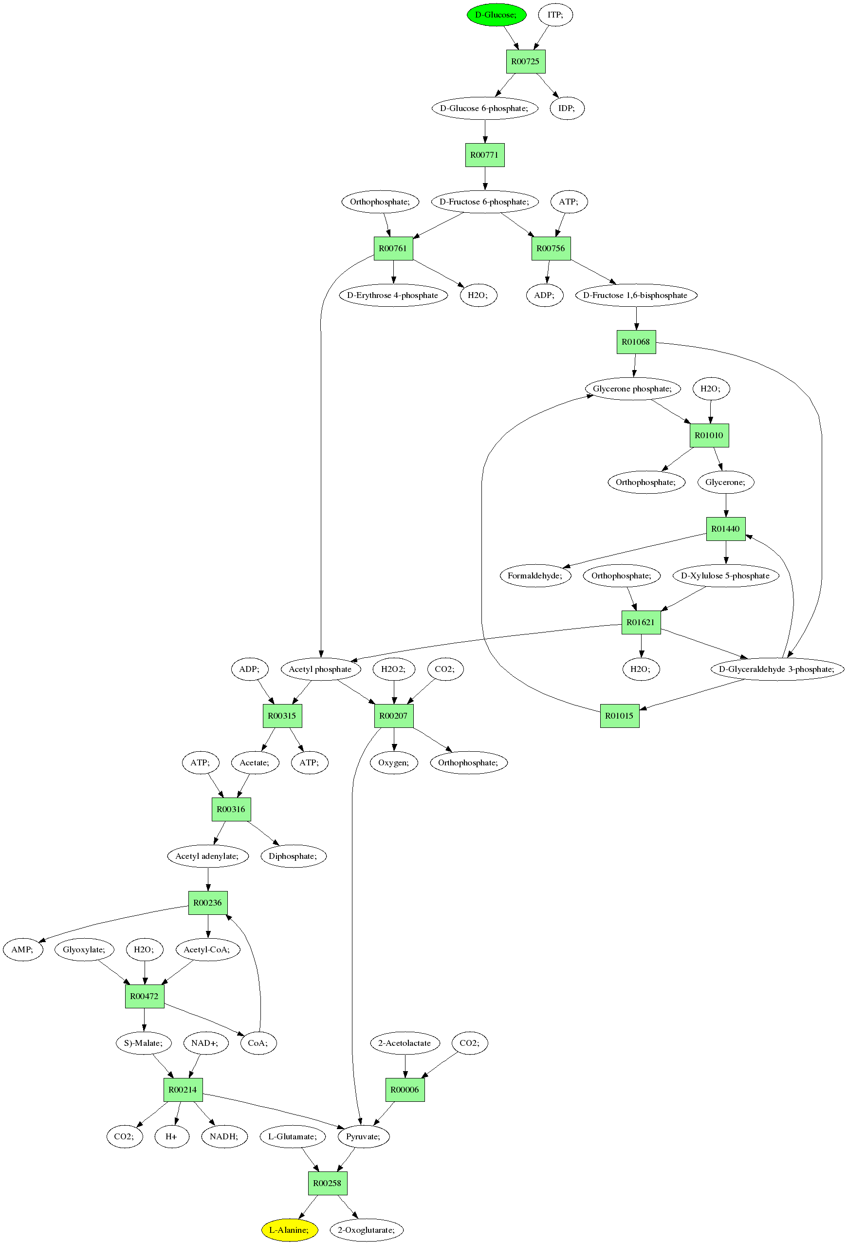 | RP00021 | R00258 | 477 | TRIRE0109187 | P52893|ALAM_YEAST | e-134 | 2.6.1.2 | L-Alanine; + 2-Oxoglutarate; <=> L-Glutamate; + Pyruvate; |