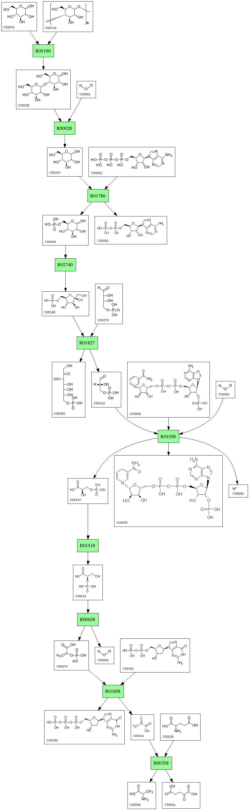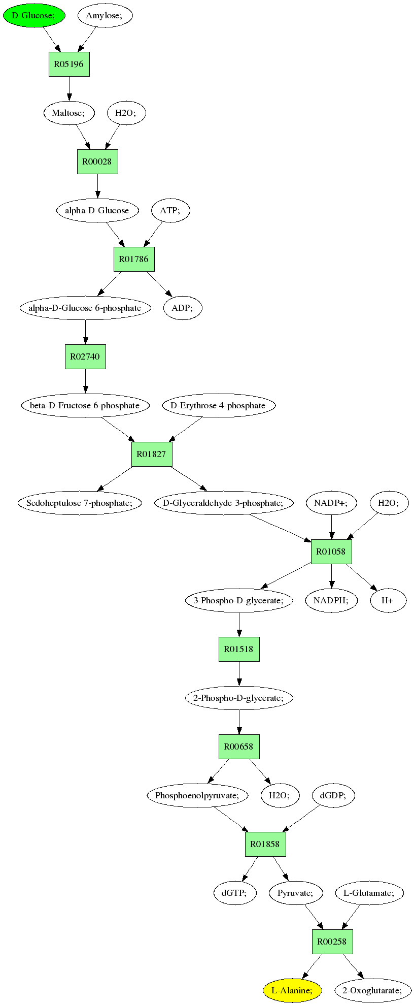 | RP00021 | R00258 | 477 | TRIRE0109187 | P52893|ALAM_YEAST | e-134 | 2.6.1.2 | L-Alanine; + 2-Oxoglutarate; <=> L-Glutamate; + Pyruvate; |