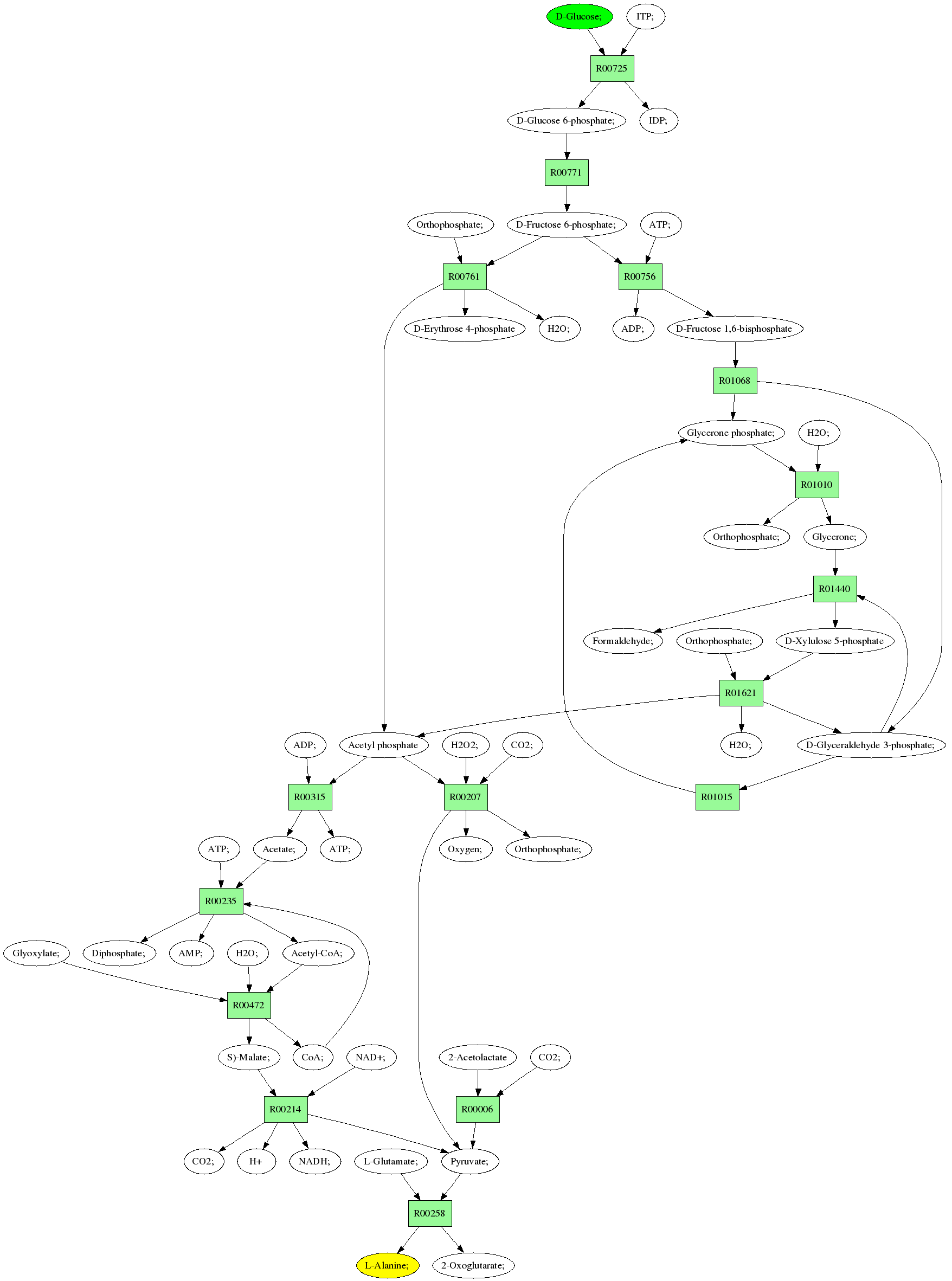 | RP00021 | R00258 | 477 | TRIRE0109187 | P52893|ALAM_YEAST | e-134 | 2.6.1.2 | L-Alanine; + 2-Oxoglutarate; <=> L-Glutamate; + Pyruvate; |