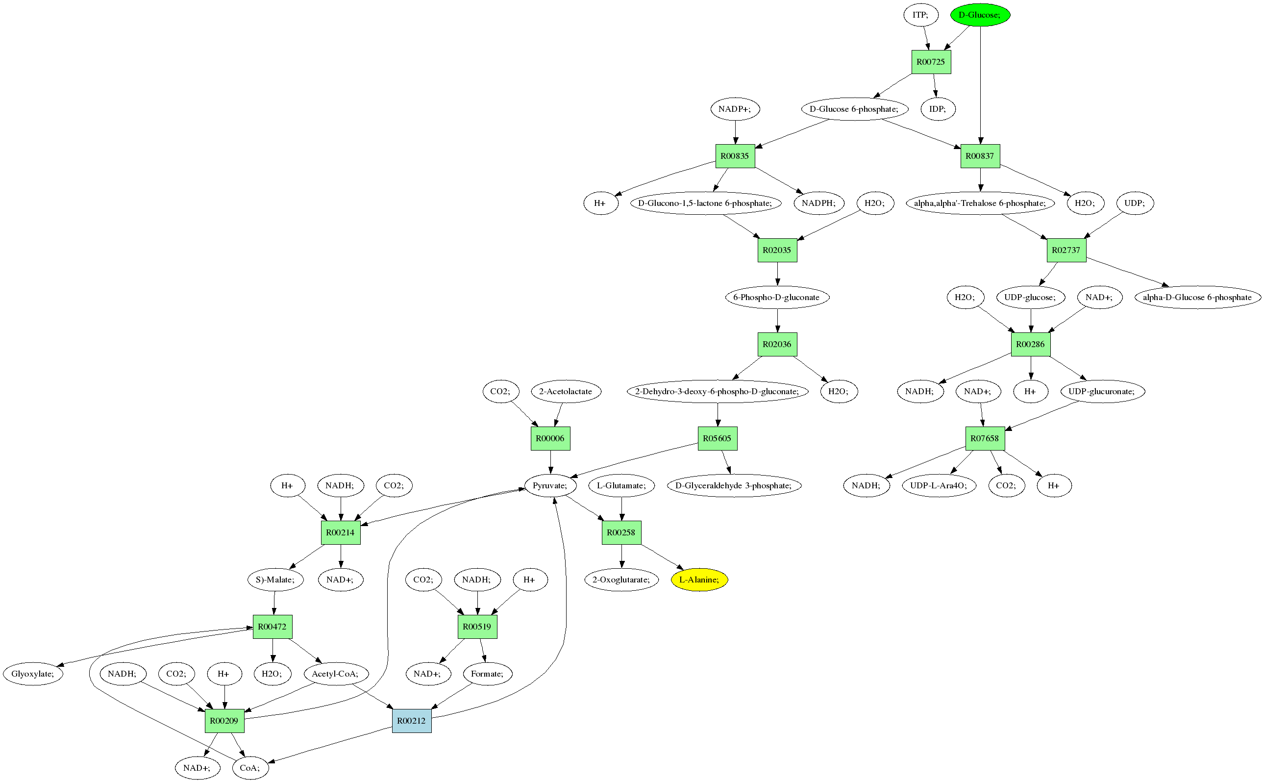 | RP00021 | R00258 | 477 | TRIRE0109187 | P52893|ALAM_YEAST | e-134 | 2.6.1.2 | L-Alanine; + 2-Oxoglutarate; <=> L-Glutamate; + Pyruvate; |