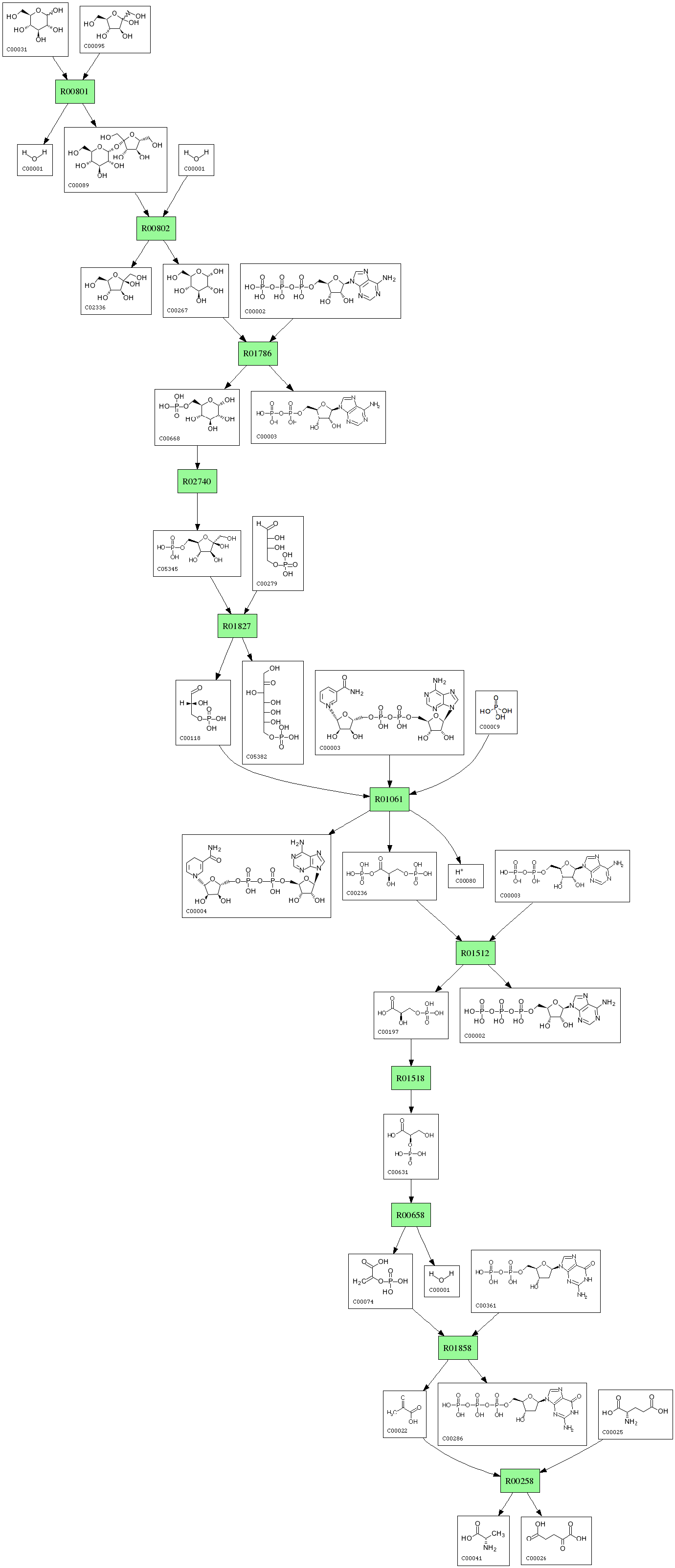 | RP00021 | R00258 | 477 | TRIRE0109187 | P52893|ALAM_YEAST | e-134 | 2.6.1.2 | L-Alanine; + 2-Oxoglutarate; <=> L-Glutamate; + Pyruvate; |