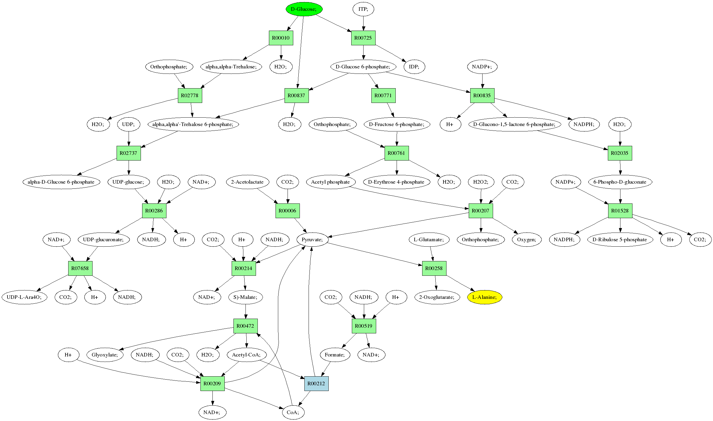| RP00021 | R00258 | 477 | TRIRE0109187 | P52893|ALAM_YEAST | e-134 | 2.6.1.2 | L-Alanine; + 2-Oxoglutarate; <=> L-Glutamate; + Pyruvate; |