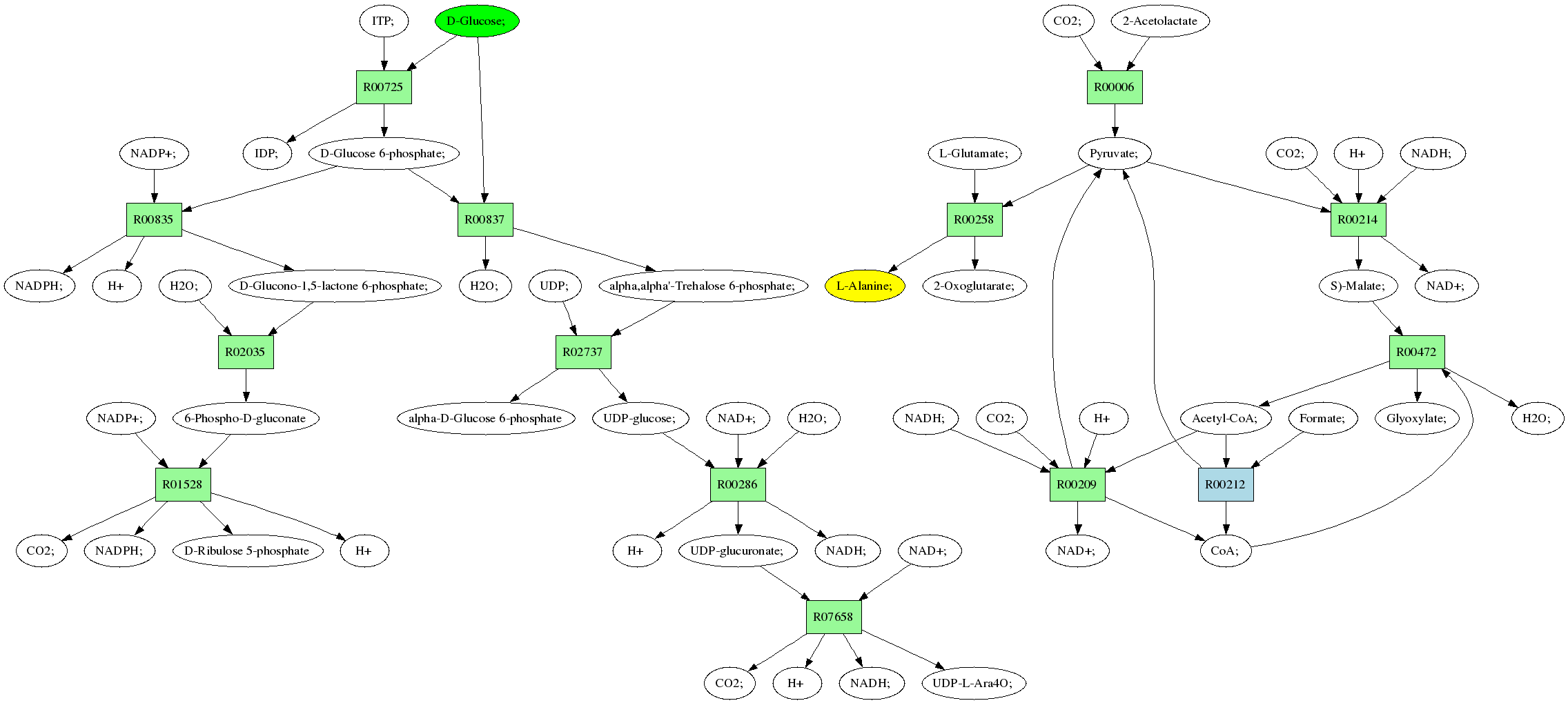 | RP00021 | R00258 | 477 | TRIRE0109187 | P52893|ALAM_YEAST | e-134 | 2.6.1.2 | L-Alanine; + 2-Oxoglutarate; <=> L-Glutamate; + Pyruvate; |
