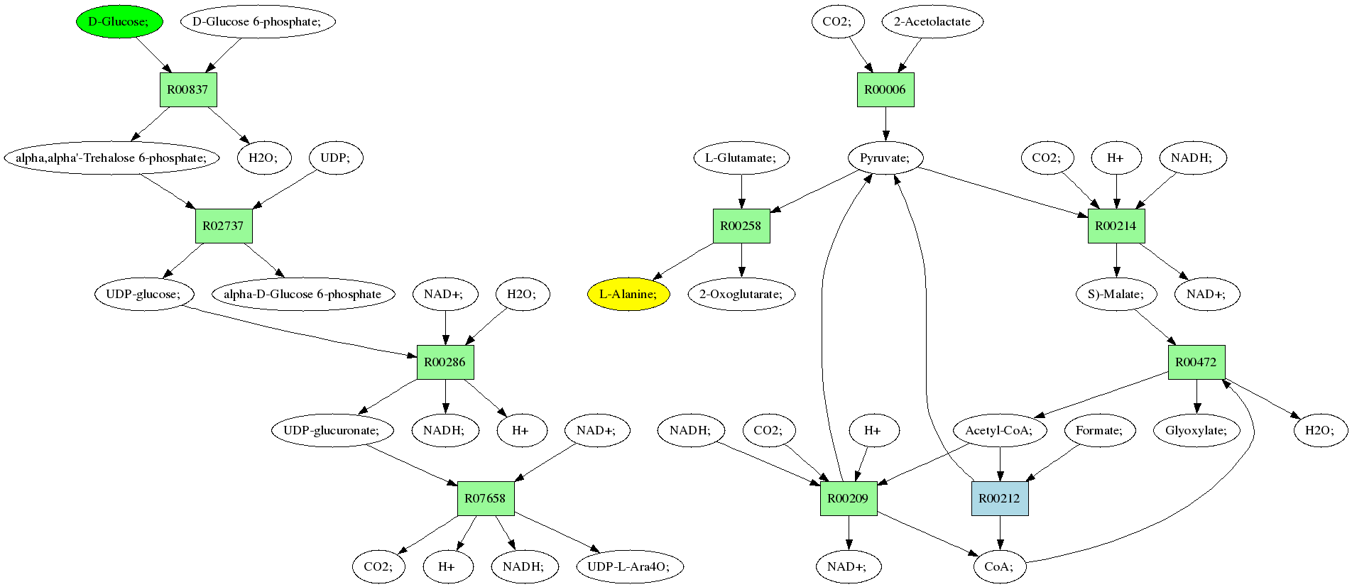 | RP00021 | R00258 | 477 | TRIRE0109187 | P52893|ALAM_YEAST | e-134 | 2.6.1.2 | L-Alanine; + 2-Oxoglutarate; <=> L-Glutamate; + Pyruvate; |