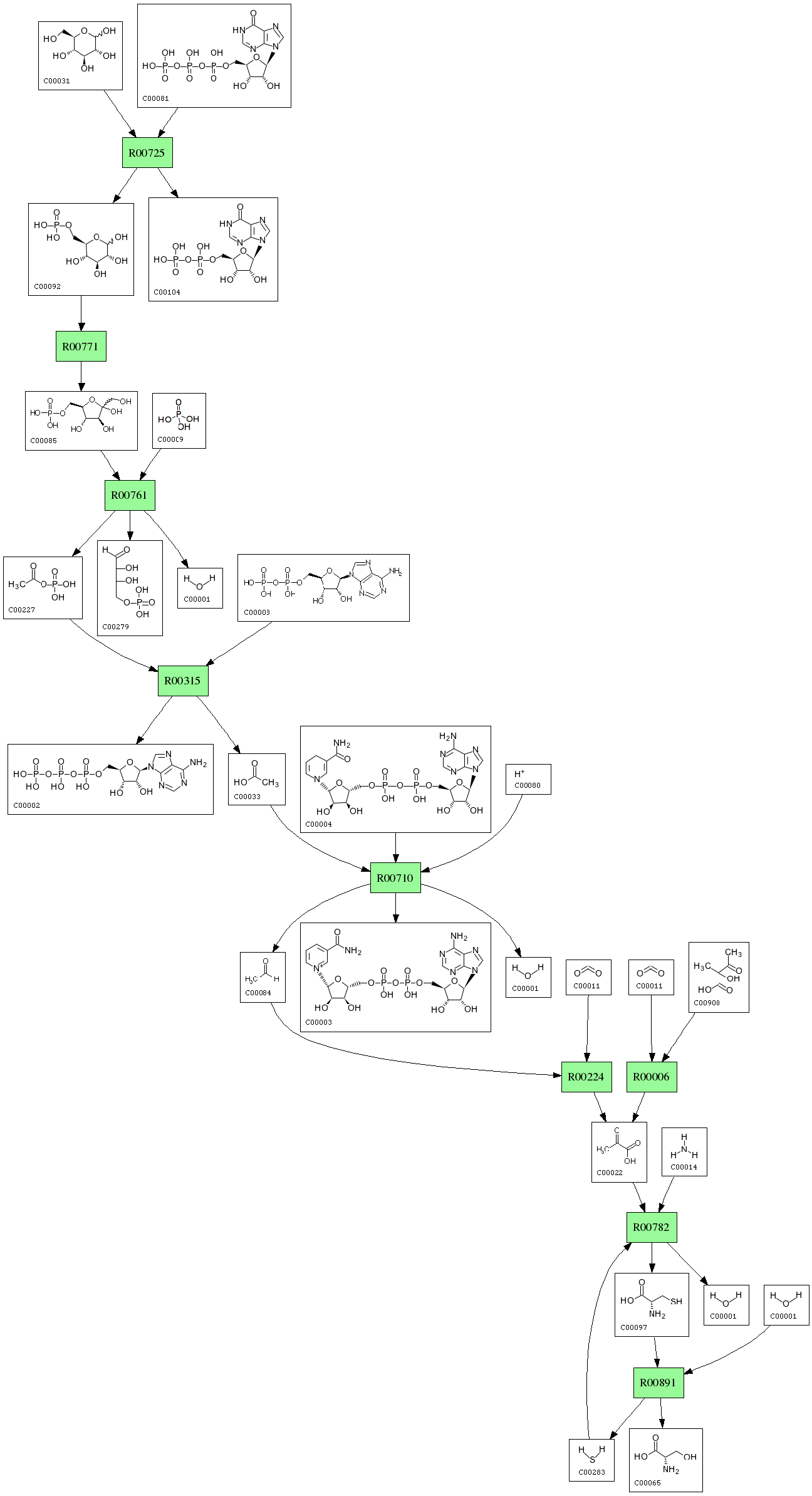 | RP01103 | R00782 | 489 | H2O; + L-Cysteine; <=> NH3; + Hydrogen sulfide; + Pyruvate; |