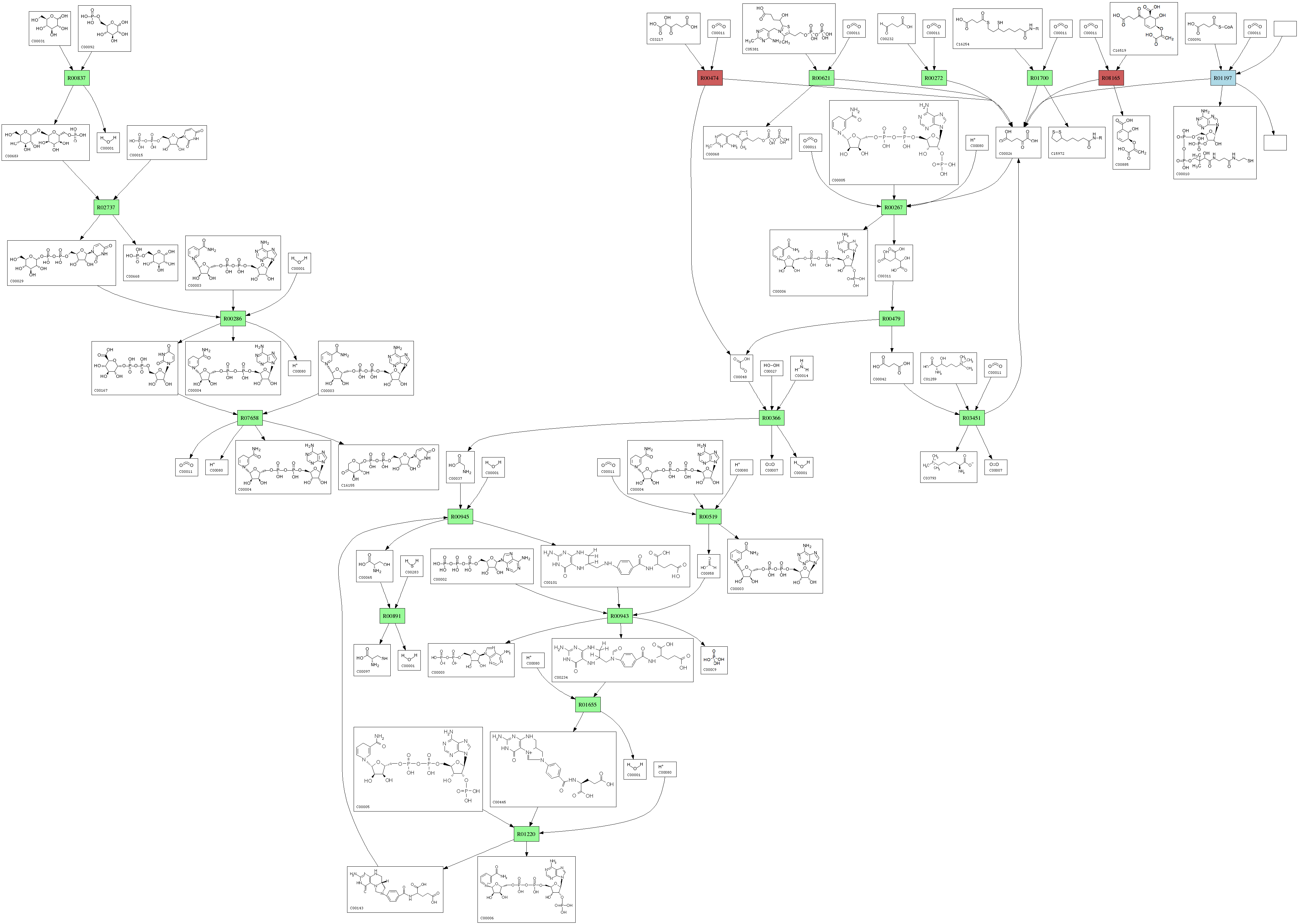 | RP12907 | R08165 | 0 | Isochorismate; + 2-Oxoglutarate; <=> CO2; + 2-Succinyl-5-enolpyruvyl-6-hydroxy-3-cyclohexene-1-carboxylate |