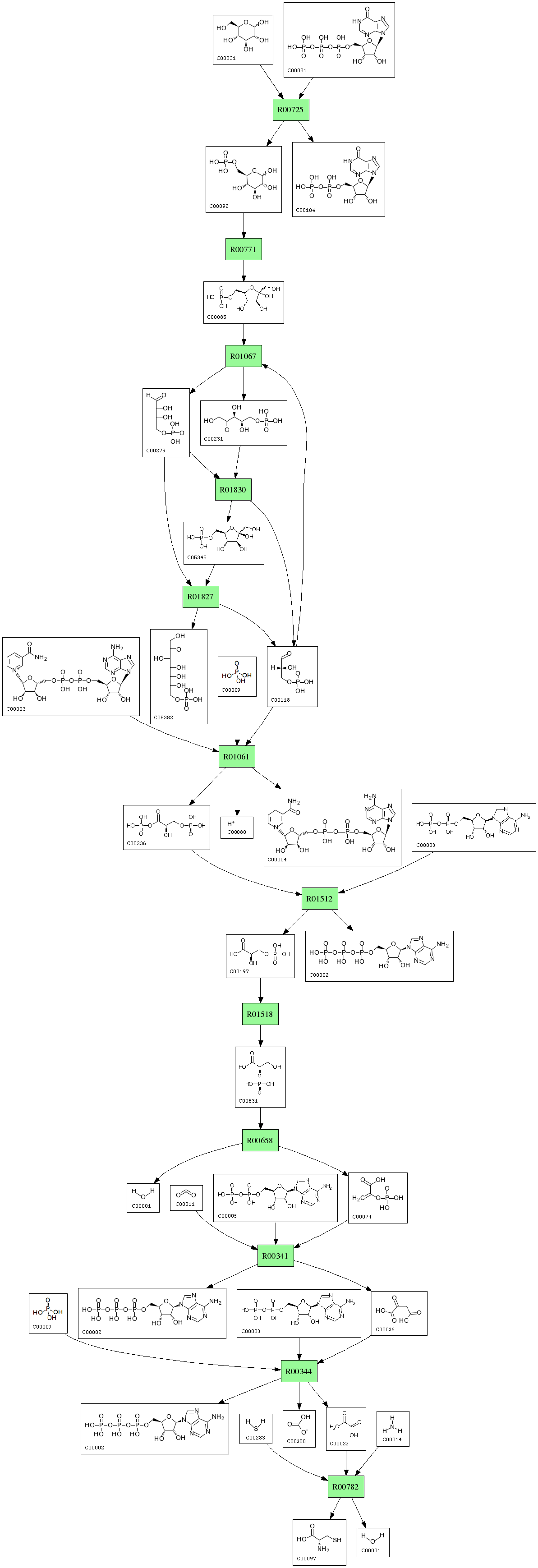 | RP13340 | R01827 | 443 | Sedoheptulose 7-phosphate; + D-Glyceraldehyde 3-phosphate; <=> D-Erythrose 4-phosphate + beta-D-Fructose 6-phosphate |