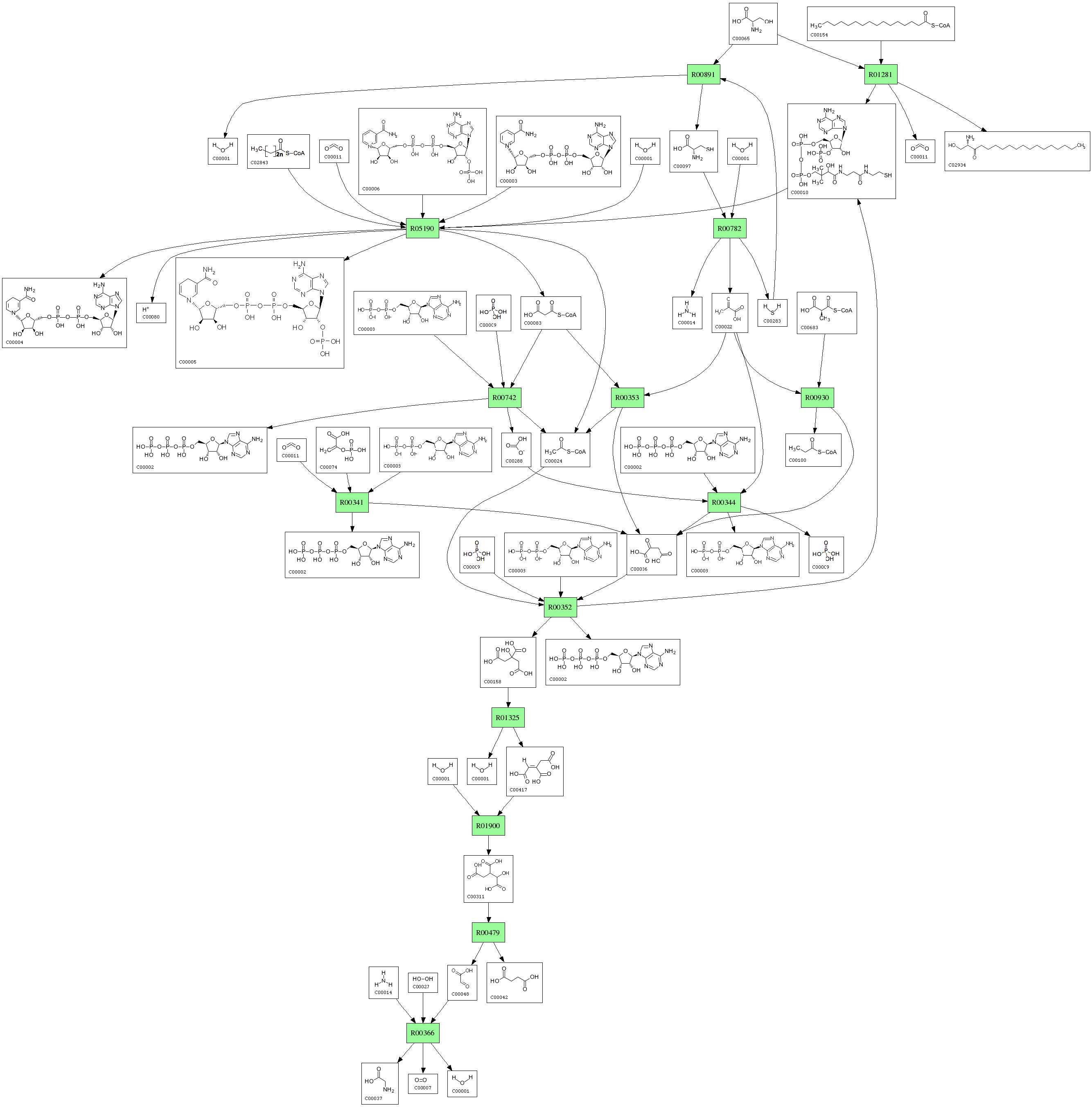 | RP08742 | R00353 | 225 | TRIRE0064345 | Q8GBW6|12S_PROFR | 2e-58 | 2.1.3.1 | Malonyl-CoA; + Pyruvate; <=> Oxaloacetate; + Acetyl-CoA; |