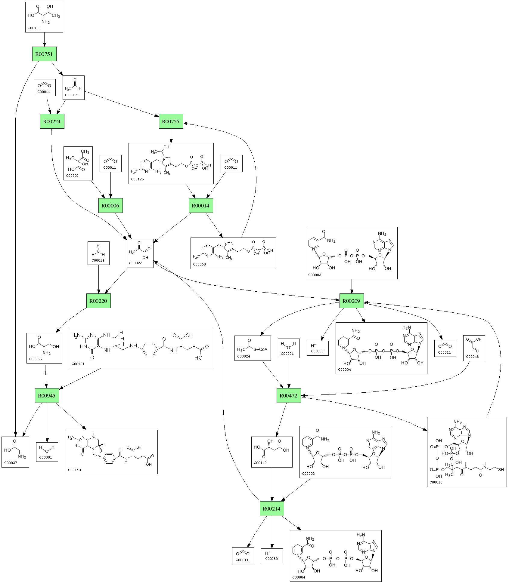 | RP01086 | R00751 | 280 | TRIRE0123223 | O13940|GLY1_SCHPO | 4e-75 | 4.1.2.5 | L-Threonine; <=> Glycine; + Acetaldehyde; |