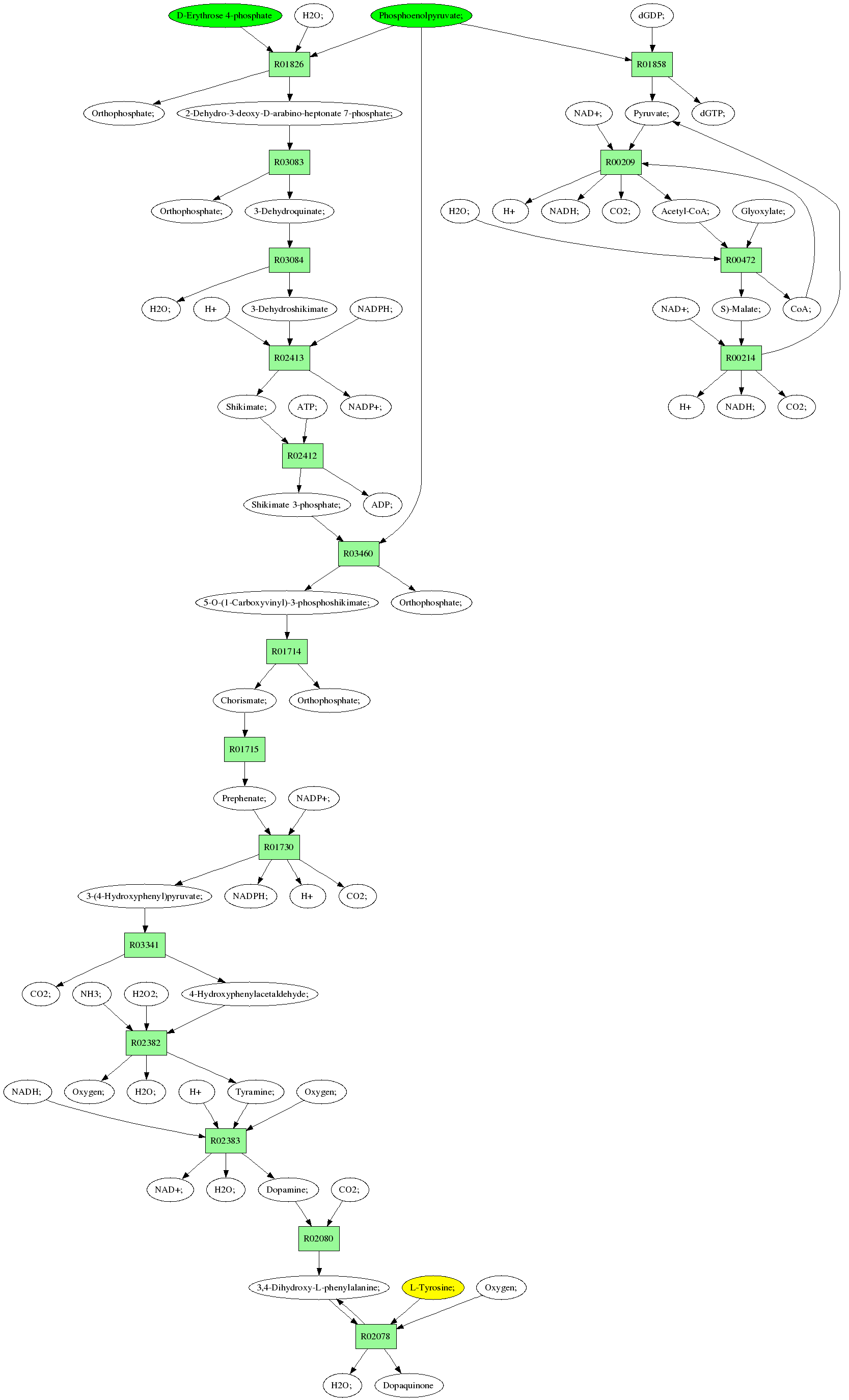 | RP00334 | R01730 | 478 | TRIRE0046545 | O60078|TYR1_SCHPO | e-134 | 1.3.1.13 | NADP+; + Prephenate; <=> 3-(4-Hydroxyphenyl)pyruvate; + NADPH; + H+ + CO2; |