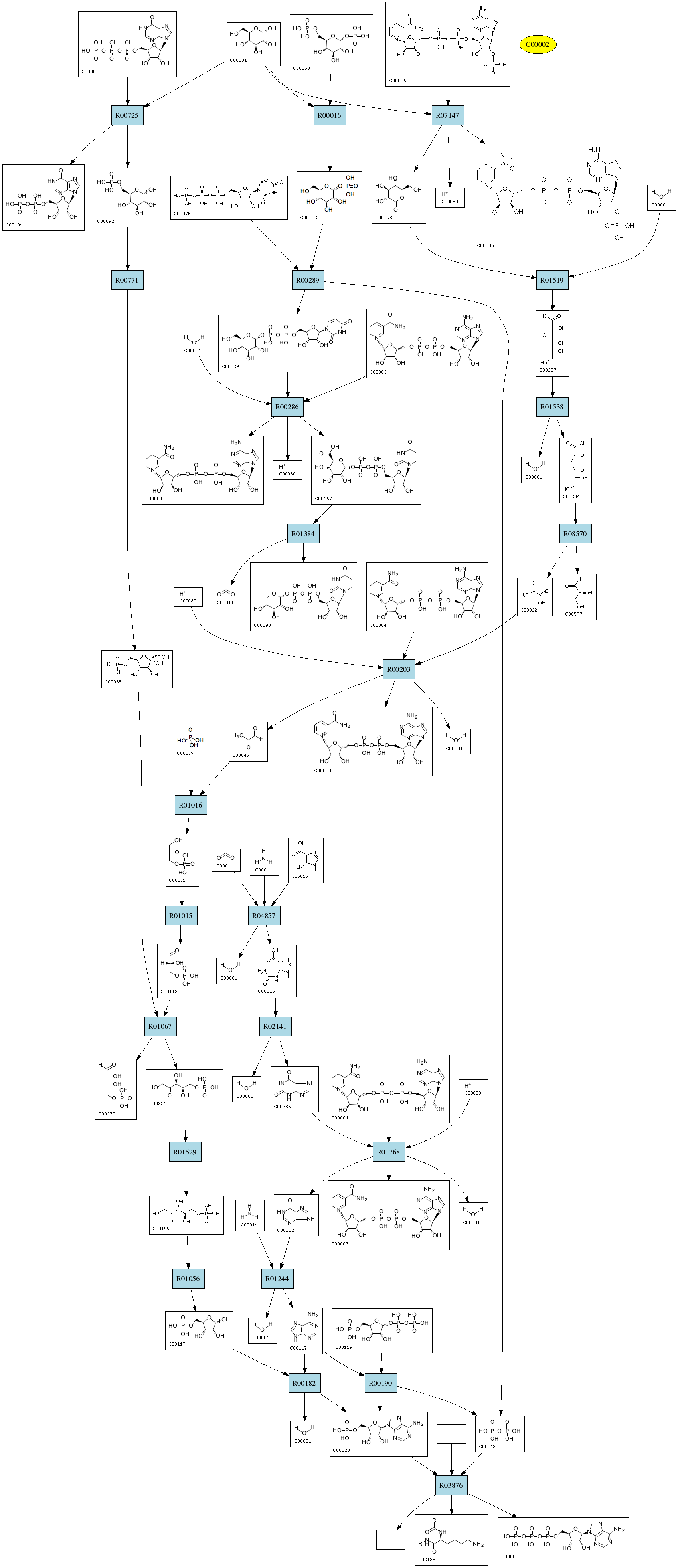 | RP01994 | R02141 | 0 | Xanthine + H2O; <=> 5-Ureido-4-imidazole carboxylate; |