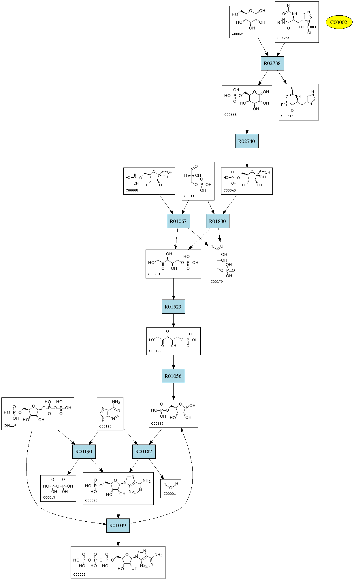 | RP12346 | R01049 | 0 | D-Ribose 5-phosphate; + ATP; <=> 5-Phospho-alpha-D-ribose 1-diphosphate; + AMP; |