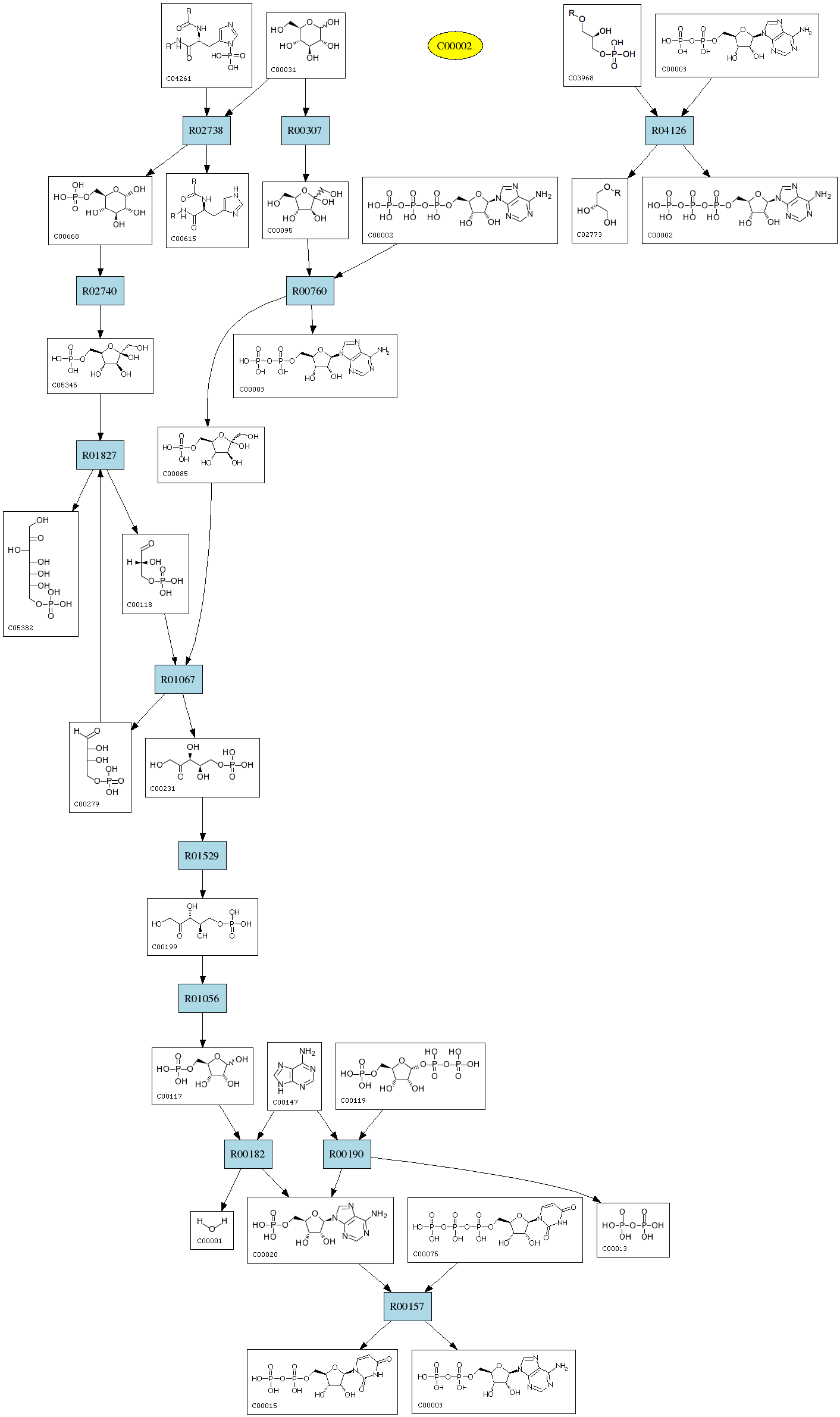 | RP04030 | R00182 | 0 | AMP; + H2O; <=> D-Ribose 5-phosphate; + Adenine; |