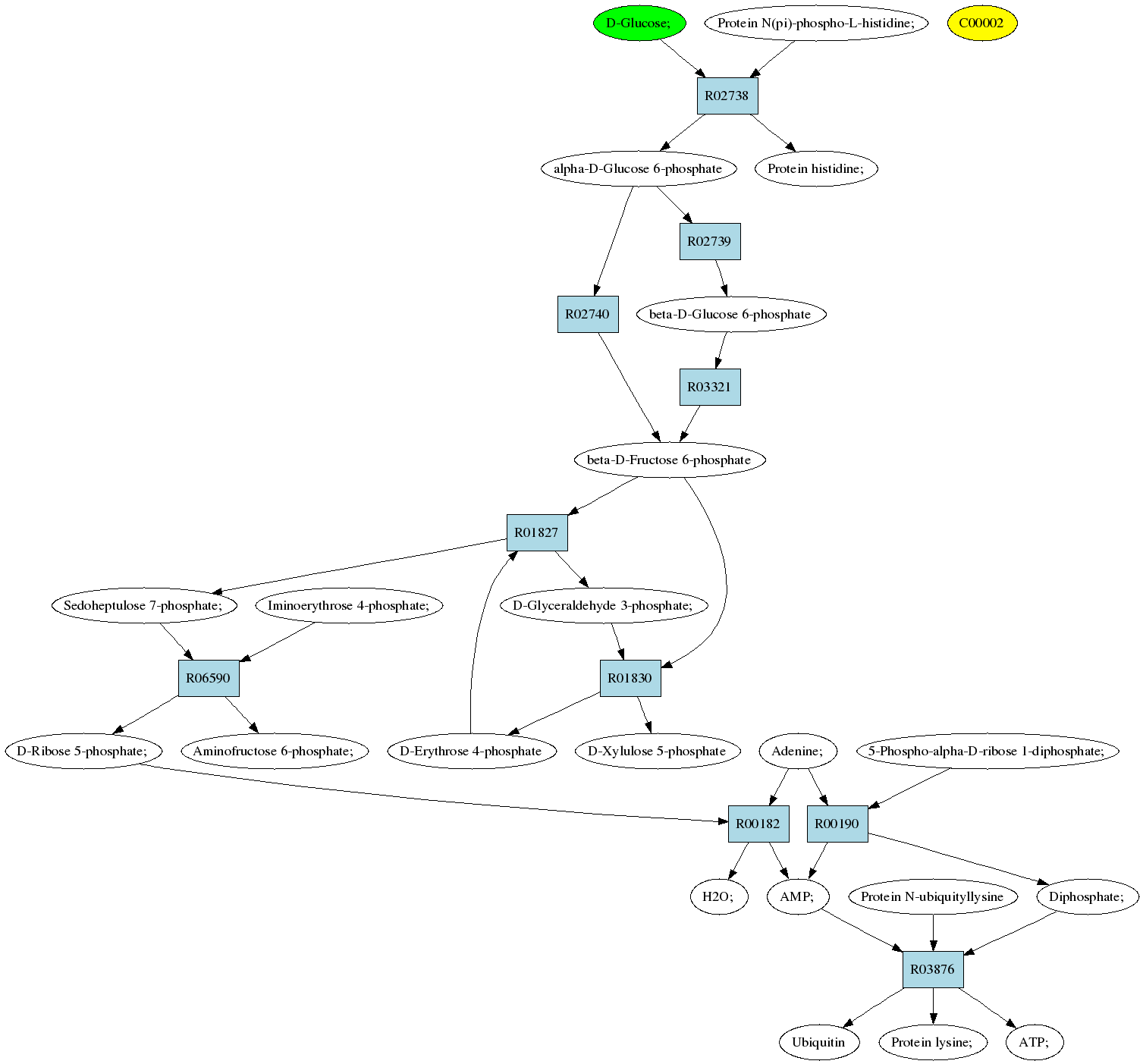 | RP04030 | R00182 | 0 | AMP; + H2O; <=> D-Ribose 5-phosphate; + Adenine; |
