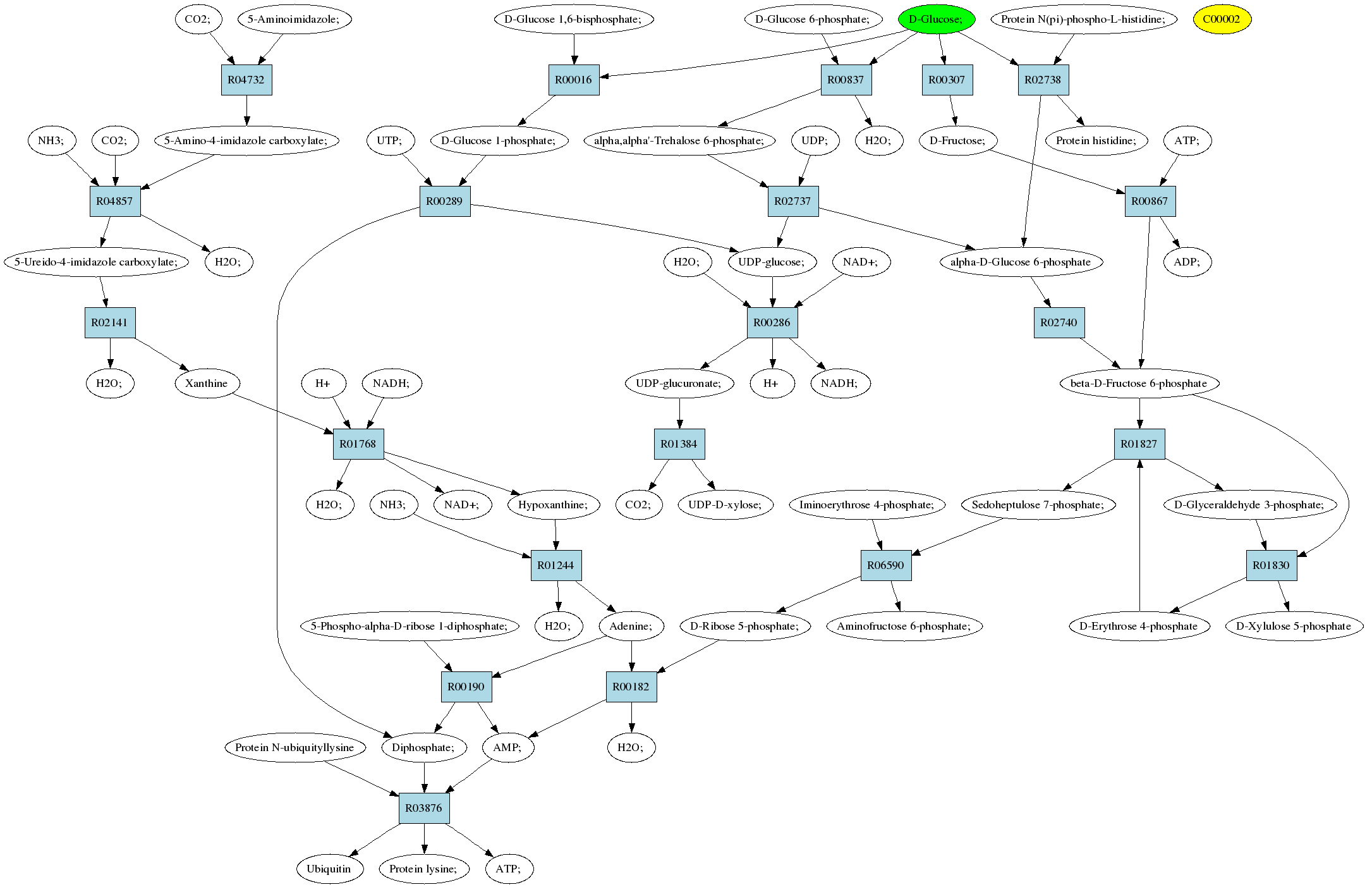 | RP02452 | R02738 | 0 | Protein N(pi)-phospho-L-histidine; + D-Glucose; <=> alpha-D-Glucose 6-phosphate + Protein histidine; |