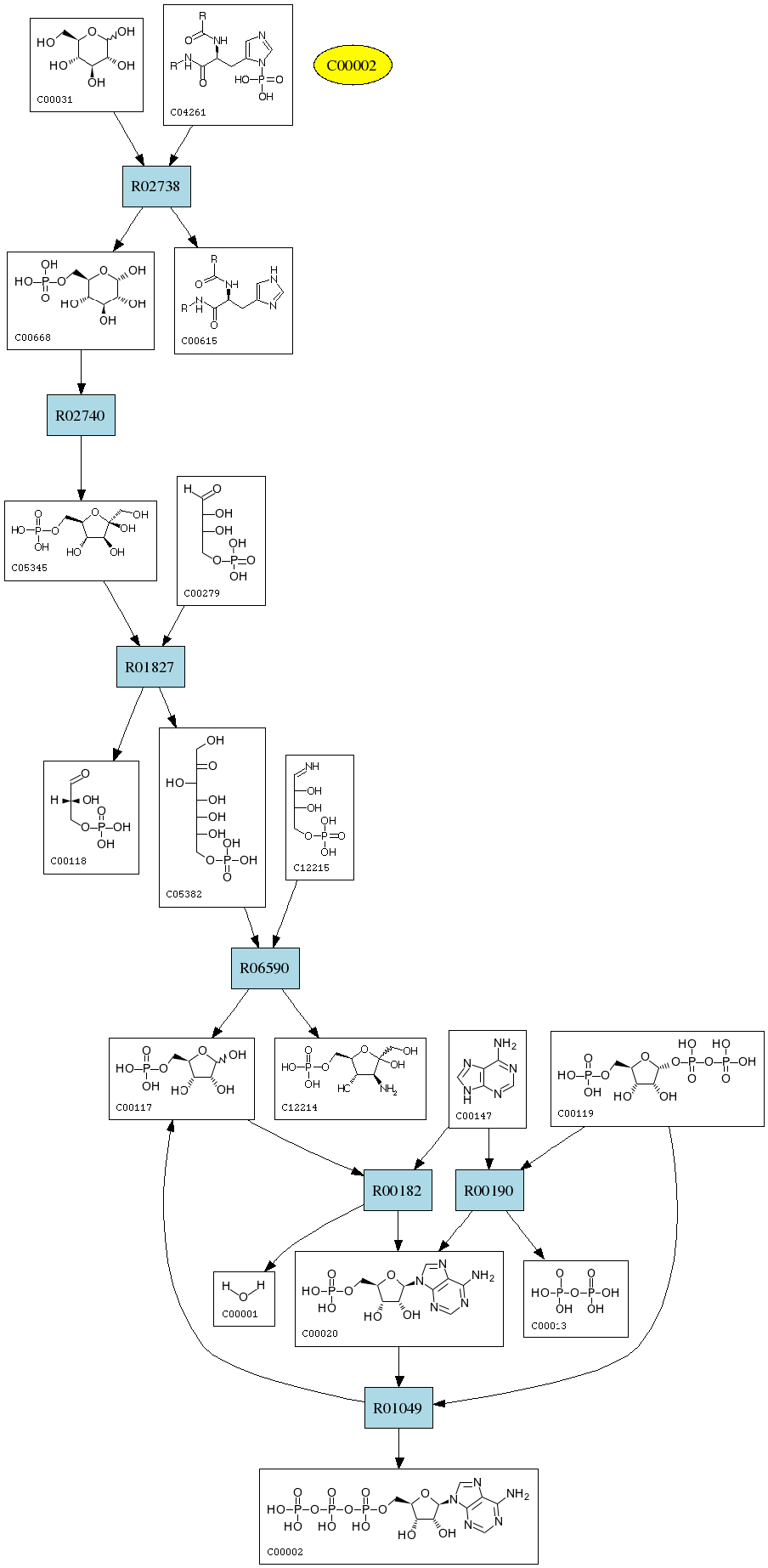 | RP12346 | R01049 | 0 | D-Ribose 5-phosphate; + ATP; <=> 5-Phospho-alpha-D-ribose 1-diphosphate; + AMP; |
