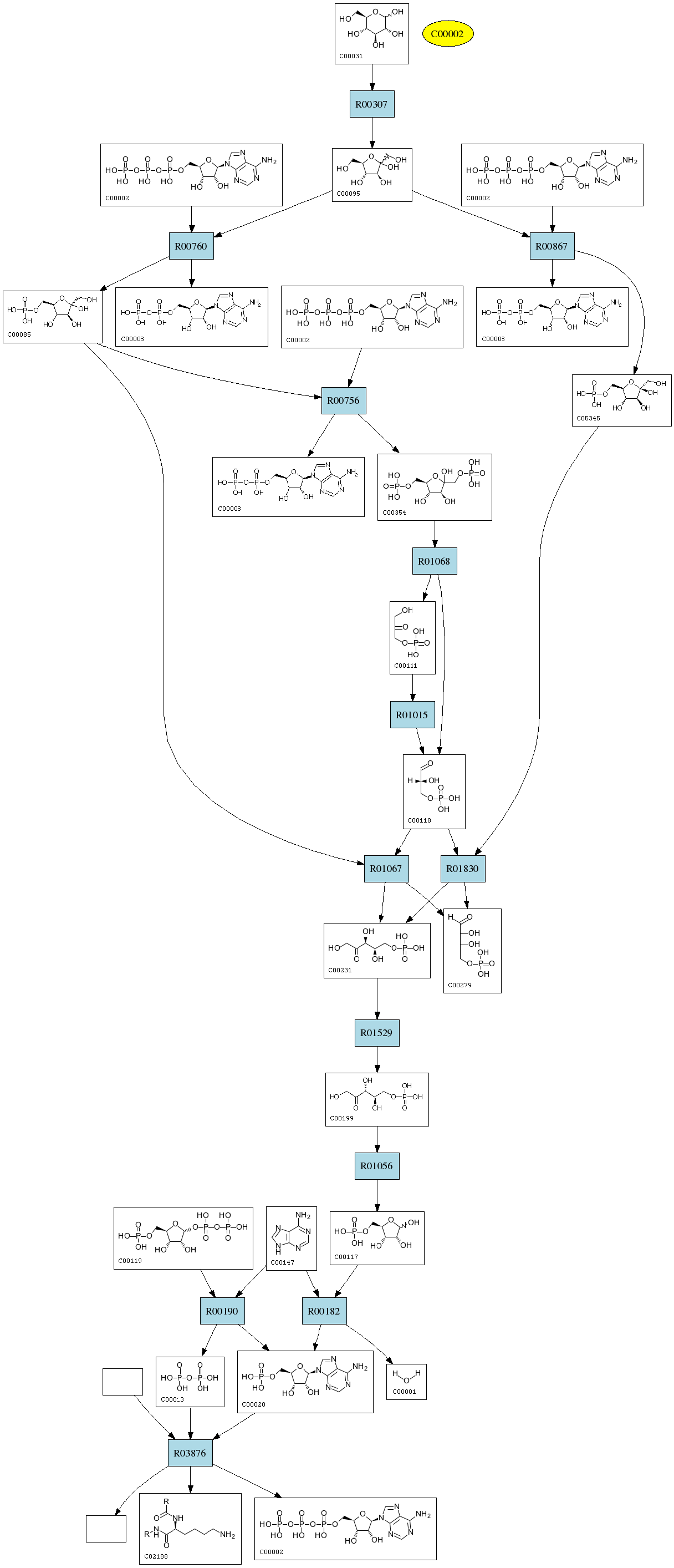 | RP04030 | R00182 | 0 | AMP; + H2O; <=> D-Ribose 5-phosphate; + Adenine; |