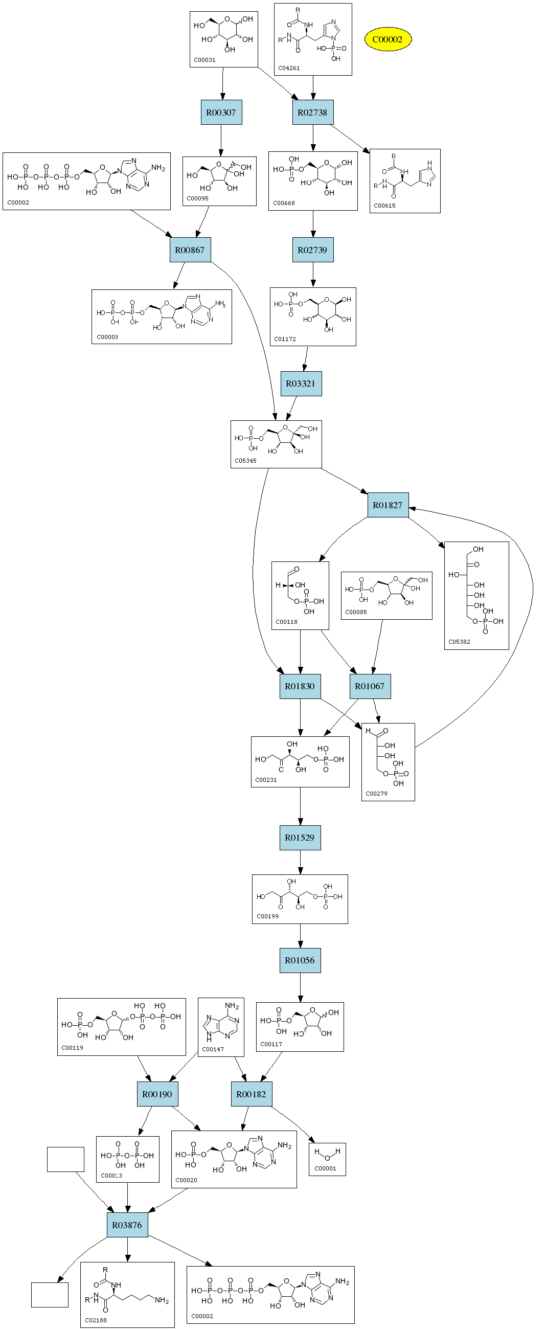 | RP04030 | R00182 | 0 | AMP; + H2O; <=> D-Ribose 5-phosphate; + Adenine; |