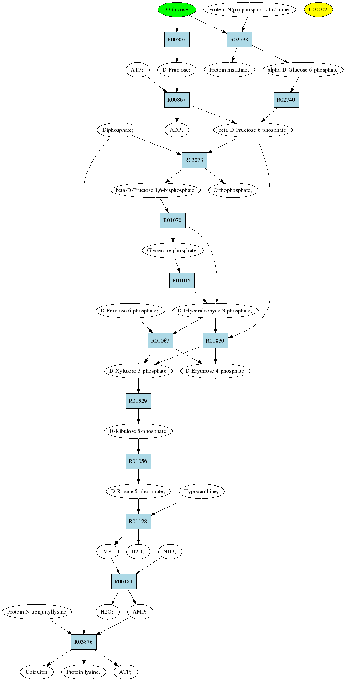 | RP02452 | R02738 | 0 | Protein N(pi)-phospho-L-histidine; + D-Glucose; <=> alpha-D-Glucose 6-phosphate + Protein histidine; |